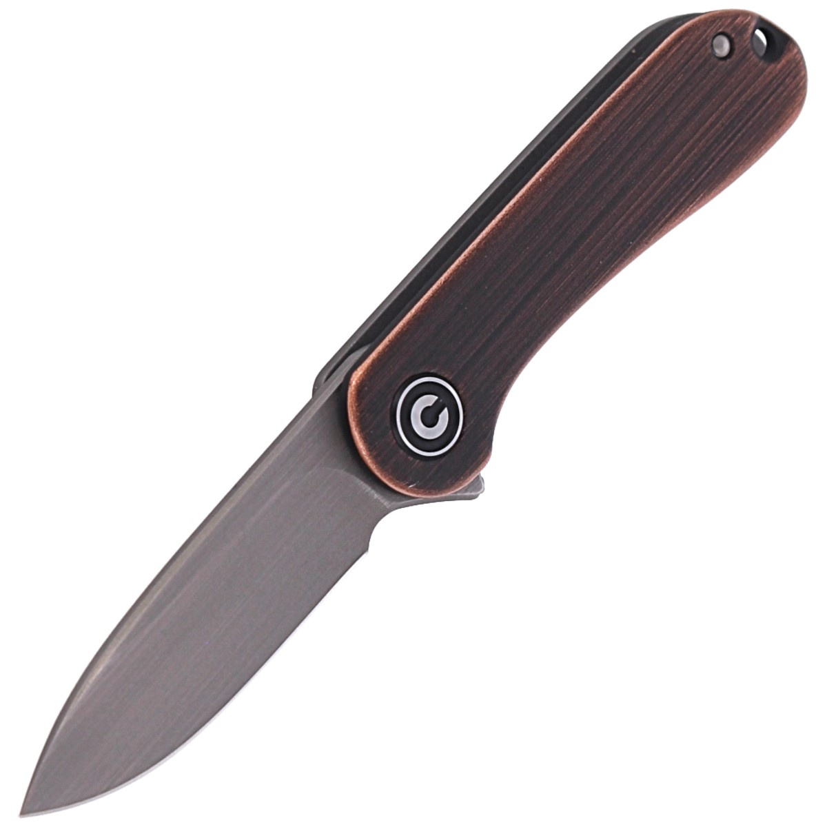 Mini Elementum Flipper Black Hand Rubbed Copper, Gray Hand Rubbed. Oryginalny Elementum jest kompaktowym, uniwersalnym nożem składanym w doskonałej cenie, zaprojektowanym z myślą o łatwym przenoszeniu. Będąc jednym z najlepszych folderów E.D.C., zyskał uznanie na targach nożowych Blade Show zdobywając nagrodę Best Buy of The Year 2021. Idąc za ciosem, marka Civivi wydała mniejszą o około 1 cal wersję tego bestsellerowego noża, z klingą ze stali Sandvik 14C28N, w formacie umożliwiającym przenoszenie go m.in. przy kluczach.