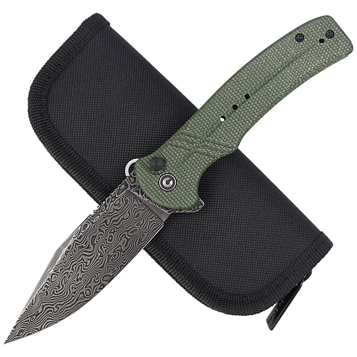 - Cogent Green Micarta, Black Damascus niesamowity folder EDC. Wykonana z czarnego damastu głownia Clip Point, otwierana grawitacyjnie lub za pomocą szybkiej płetwy Flippera. Okładziny z micarty. Doskonały stosunek ceny do jakości. Bestseller!