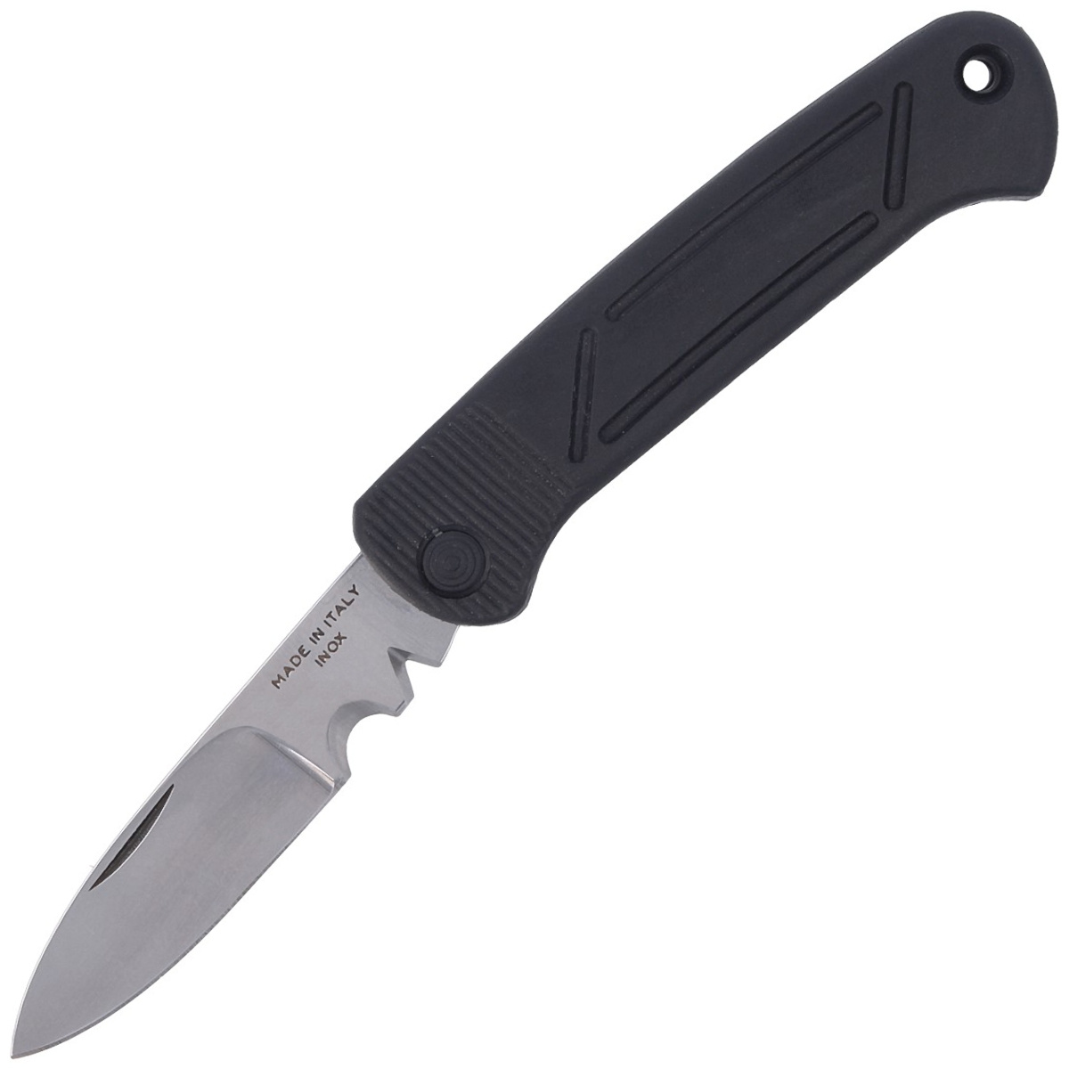 - B05E Black FRN, Satin, nóż dedykowany elektrykom (nóż do kabli) włoskiej firmy MAC Coltellerie, w doskonałej cenie! Pewnie leży nawet w dużych dłoniach, okładziny w kolorze niebieskim z tworzywa FRN. Głownia ze stali W 1.4028, ilość ostrzy (1) funkcji (3)