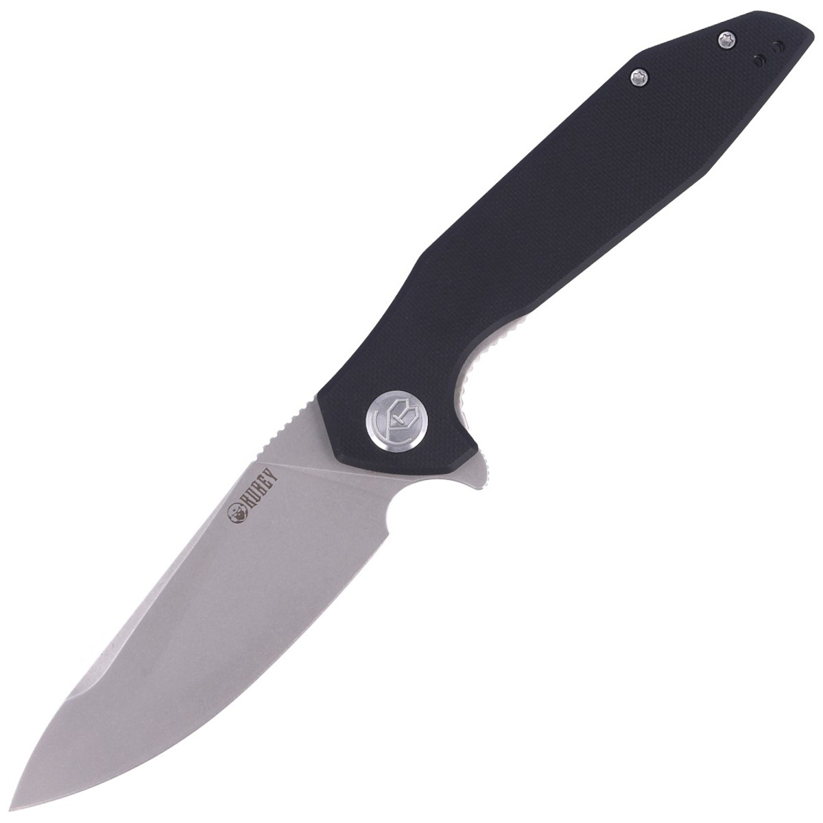 Rękojeść - z czarnego G10 (włókno szklane prasowane pod ciśnieniem z syntetyczną żywicą), teksturowanego dla poprawienia pewności uchwytu, przykręconego do stalowej ramy noża. Otwarta konstrukcja tzw. open-backed mocowana do siebie stalowymi tulejami dystansowymi zmniejsza wagę oraz ułatwia czyszczenie. Prosta, solidna konstrukcja daje pewność wieloletniego użytkowania. Głębokie podcięcie na palec (fore finger groove) poprawia pewność uchwytu. Oś pivota zdobi stylizowane logo marki Kubey. Dwupozycyjny (prawo i lewostronny) metalowy klips deep carry pozwala przenosić dyskretnie nóż w kieszeni w pozycji tip-up (czubkiem ostrza do góry).