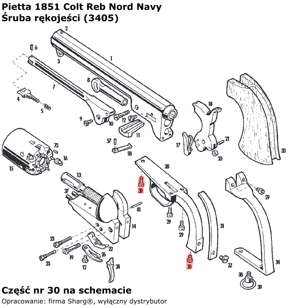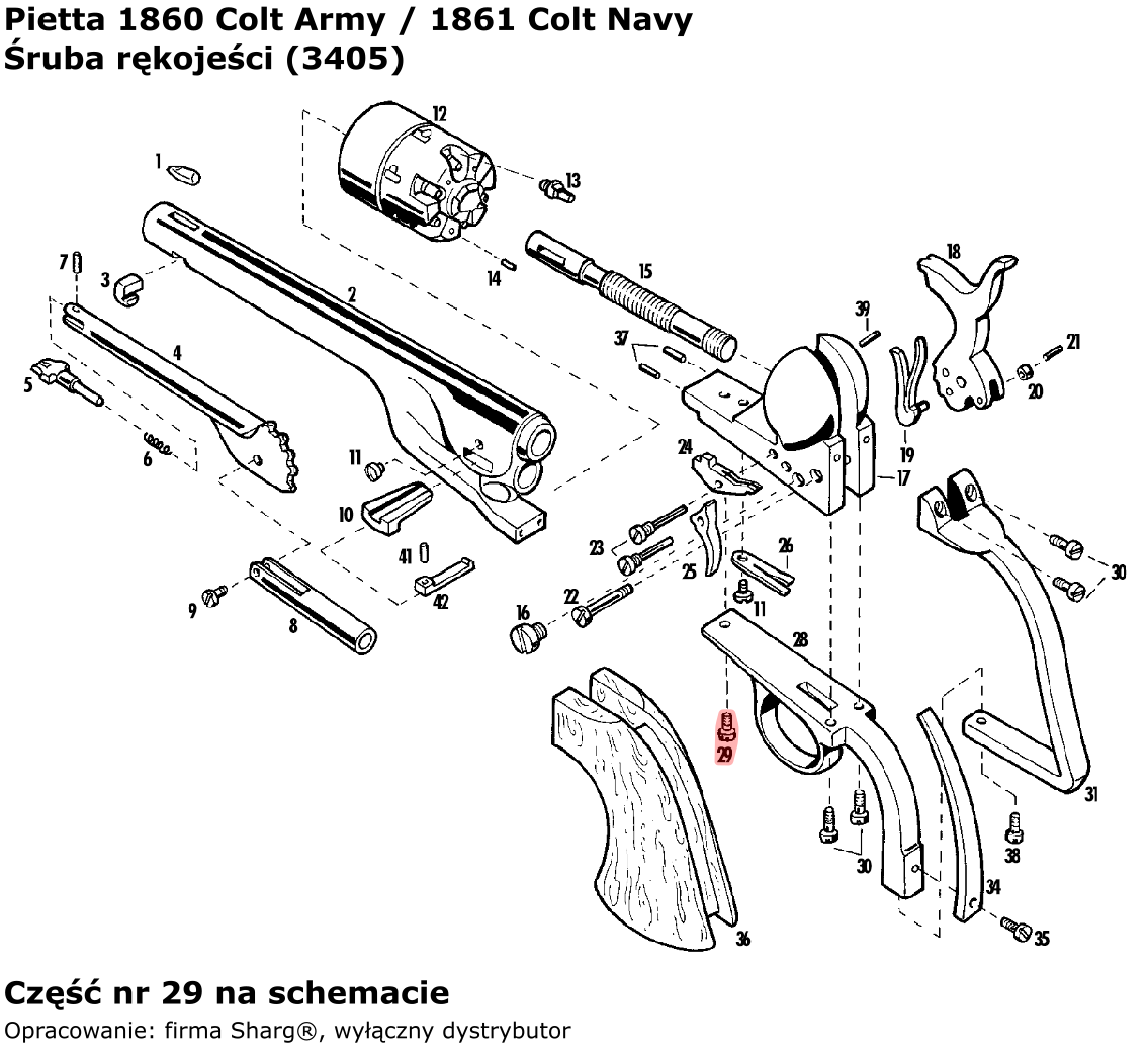- 3405 (serwis) śruba rękojeści firmy Pietta. Do rewolwerów czarnoprochowych: 1836 Colt Paterson, 1851 Colt Reb Nord Navy, 1860 Colt Army, 1861 Colt Navy oraz 1858 Remington New Model Army (.44 cal) / Navy (.36 cal)...