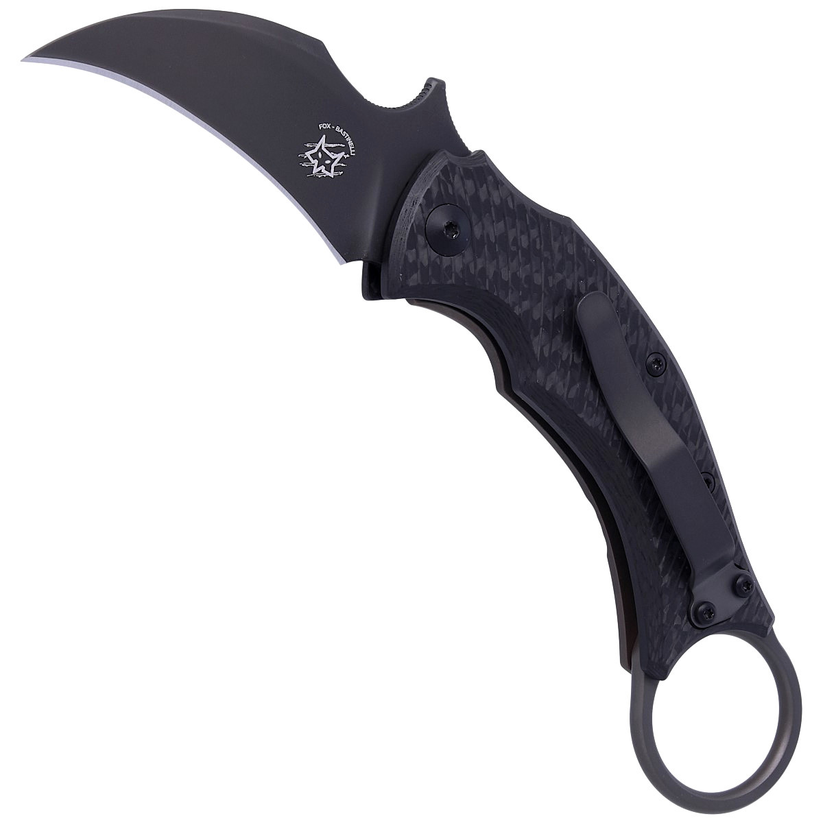 - Black Bird by Bastinelli Carbon Fiber / Bronze Ti, Black Elmax, karambit włoskiej firmy FOX. Ostrze Hawkbill z powłoką PVD, klips Tip-Up, system szybkiego otwarcia klingi oparty o zmodyfikowany hak Emerson. Projekt Bastinelli, amerykańskiego knifemaker'a