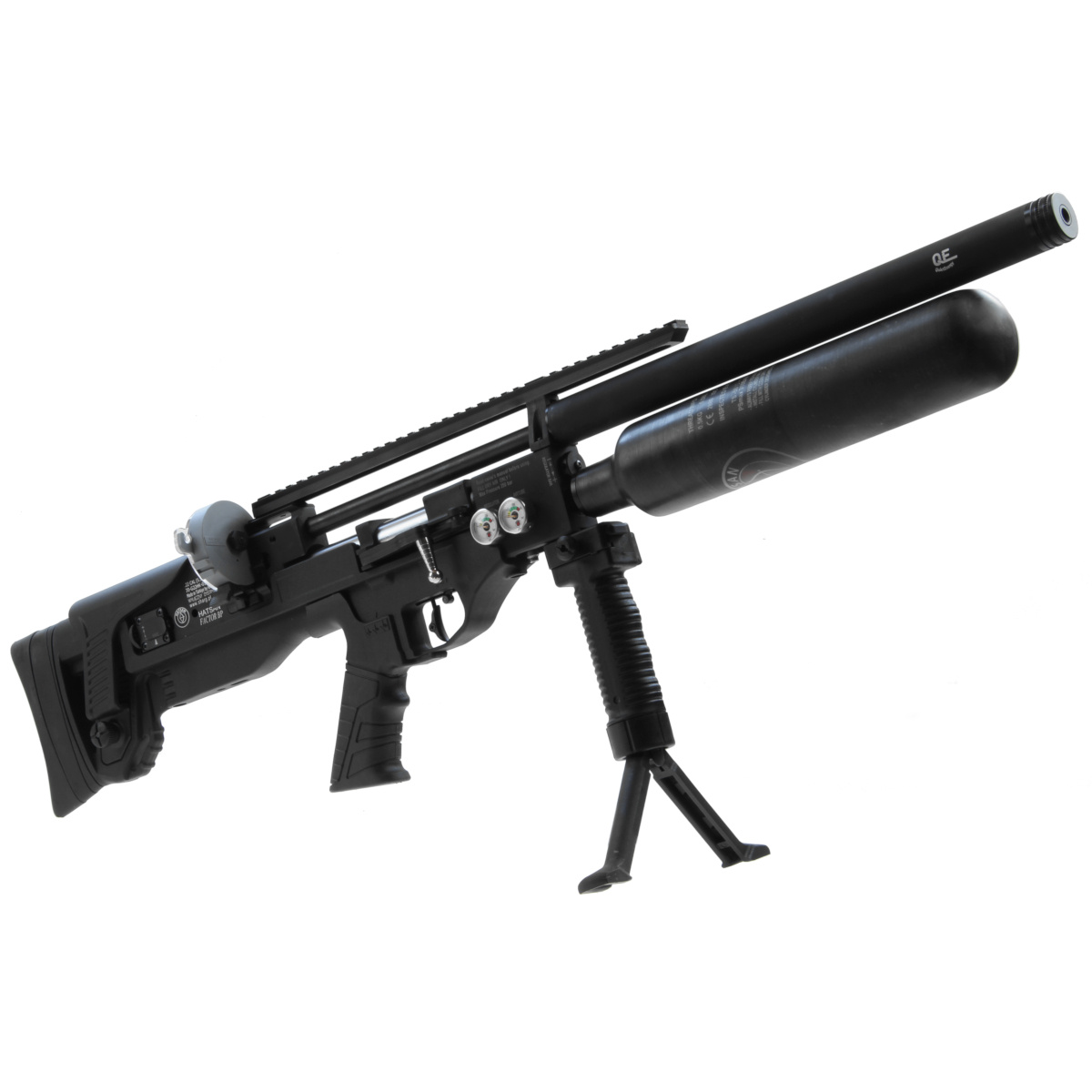 FACTOR BP, nowoczesna wiatrówka PCP w znanej z przesunięcia komory i magazynika za spust wersji bullpup oraz lekkim kartuszem z włókna węglowego. Poprzez zastosowanie układu bezkolbowego, uzyskano kompaktowe wymiary karabinu, przy zachowaniu normalnej długości lufy gwarantującej celność i zasięg oraz typową dla tej konstrukcji redukcję wagi dla lepszej kontroli. FACTOR BP wyposażono w dźwignię napinania Side Lever, regulator mocy strzału, pokrętło regulacji mechanizmu spustowego oraz lufę ze zintegrowanym tłumikiem dźwięku QE. Dostępny w kalibrach: .177 (4.5 mm), .22 (5.5 mm), .25 (6.35 mm).