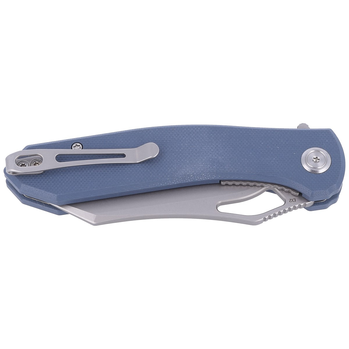 Drake, Blue G10, Bead Blasted D2, duży, uniwersalny nóż EDC. Głownia sheepsfoot ze stali D2, szybka płetwa Flippera do otwierania oraz rękojeść z G10. Znakomity stosunek jakości do ceny! Bestseller!