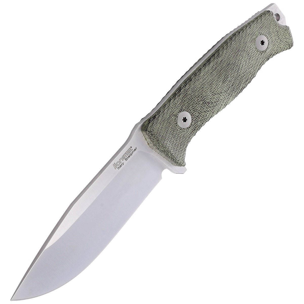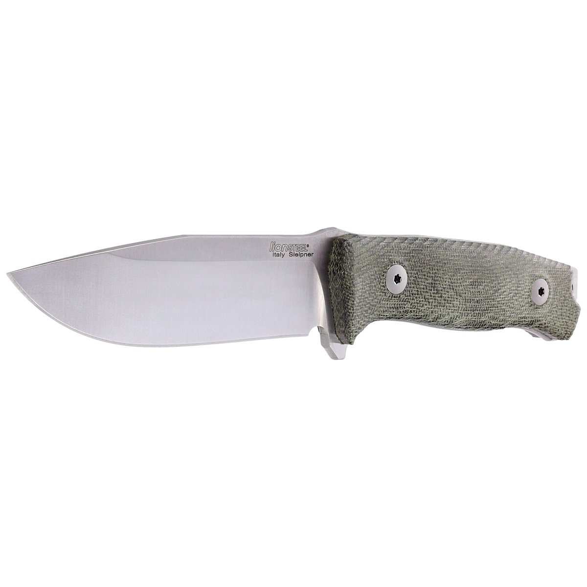 - M5 Green Canvas uniwersalny nóż włoskiej manufaktury LionSteel. Stworzony z myślą o łatwym przenoszeniu z ostrzem do ciężkich prac. Nóż outdoorowy o konstrukcji full tang z klingą ze szwedzkiej stali Sleipner, skierowany do pasjonatów survivalu, myślistwa