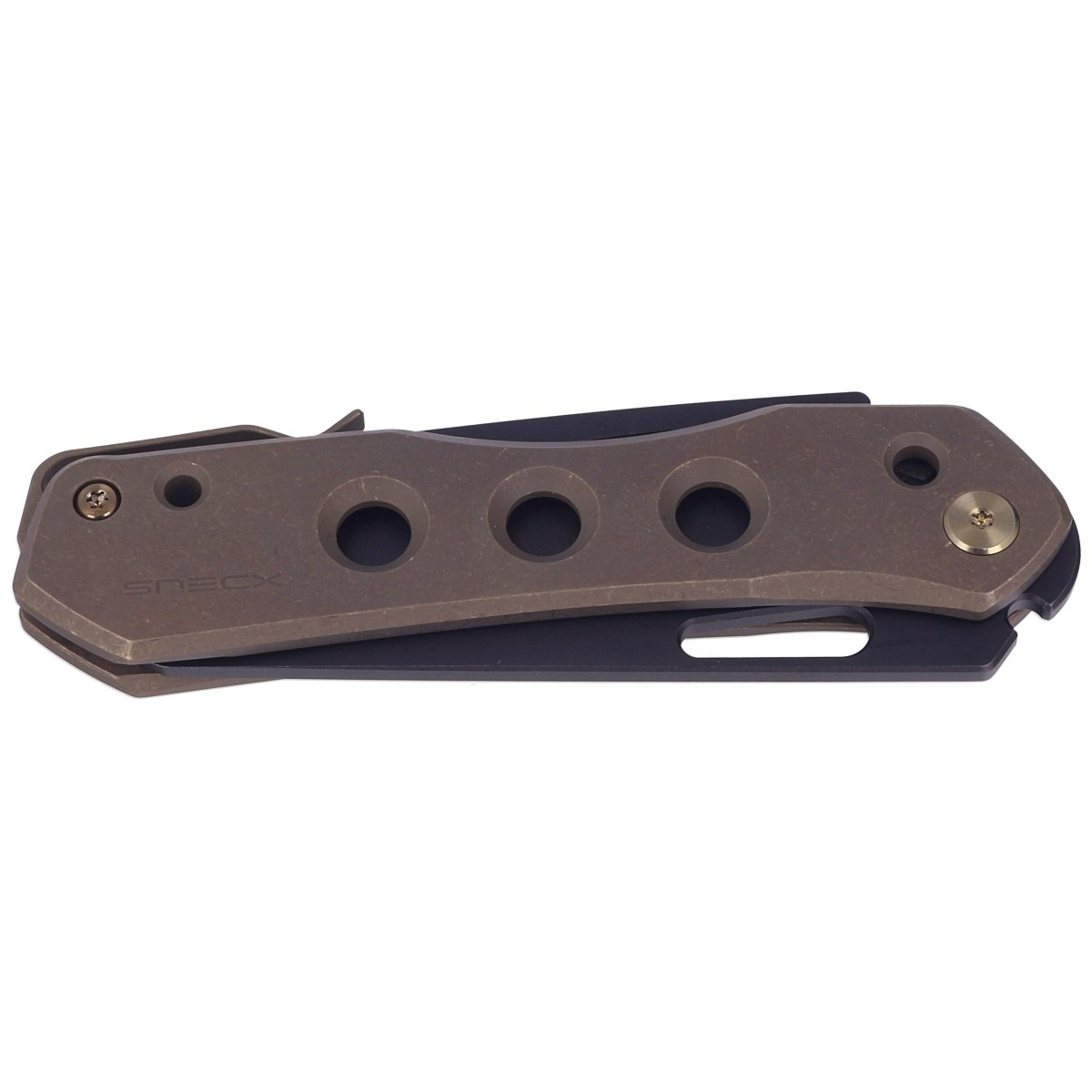 Vision R Bronze Titanium, Black Stonewashed prawdziwie wizjonerski projekt malezyjskiego knifemakera i designera Snecx'a Tana. Innowacyjna blokada Superlock, tytan, stal CPM 20CV i futurystyczny wygląd mówią "Nie jestem jak wszyscy, jestem najlepszy!!!"