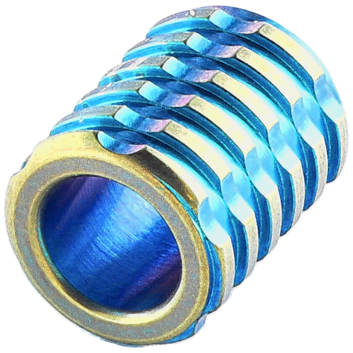 We Knife Bead, Blue, tytanowy koralik firmy WeKnife w niebieskim kolorze. Szeroki otwór przelotowy umożliwia przepuszczenie wewnątrz koralika linki paracord o średnicy 4mm. Można go również wykorzystać do innych prac rękodzielniczych.
