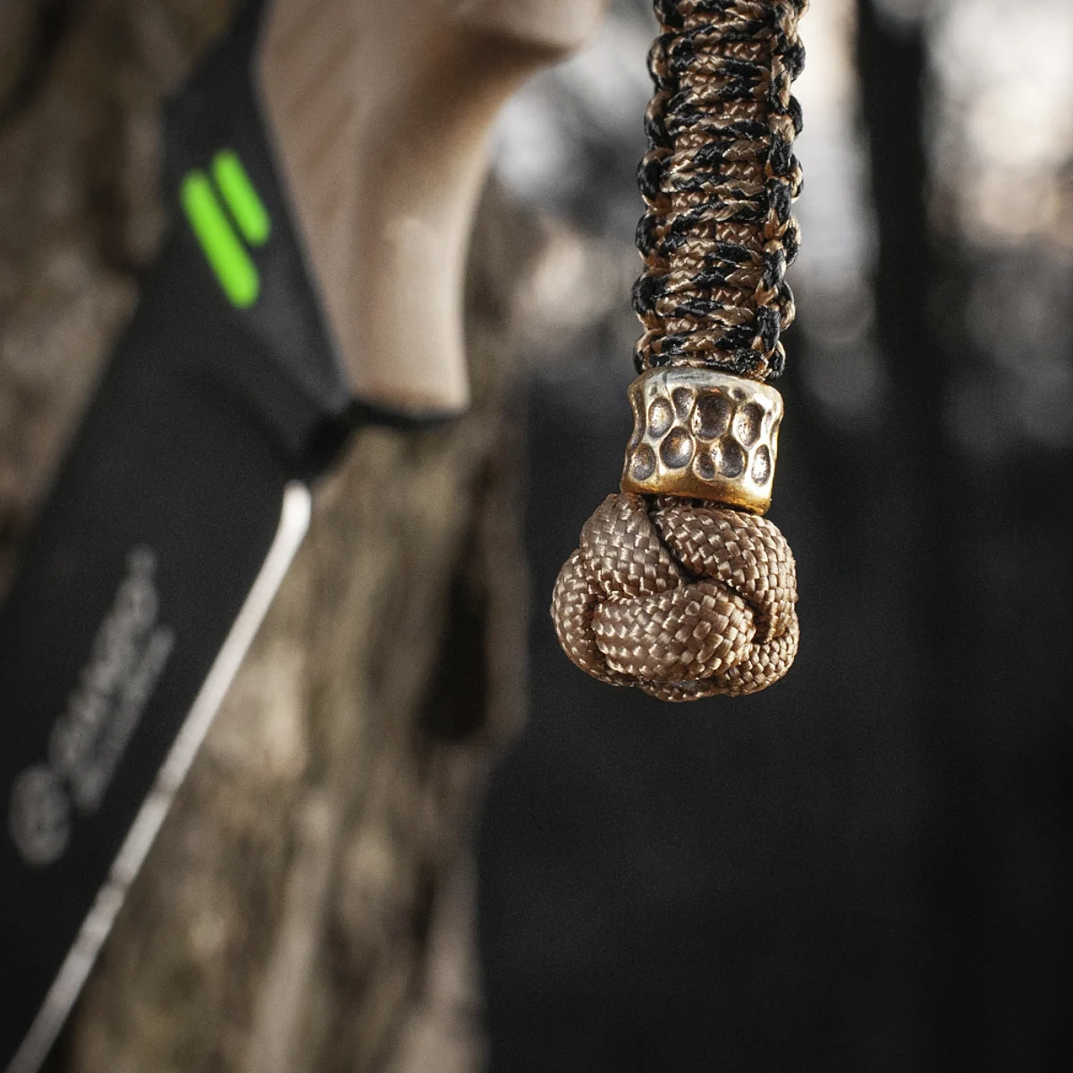 M-Tac Scandinavian Granule Coyote, przywieszka do noża, latarki, breloka, wykonana z paracordu, zakończona metalowym koralikiem ze skandynawskimi wzorami. Oprócz walorów estetycznych, przedłuża rękojeść noża ułatwiając wyciągnięcie go z kieszeni. Znakomicie również się sprawdza jako przedłużenie zamka w kurtce pozwalając na wygodne używanie zamka nawet w grubych rękawicach.