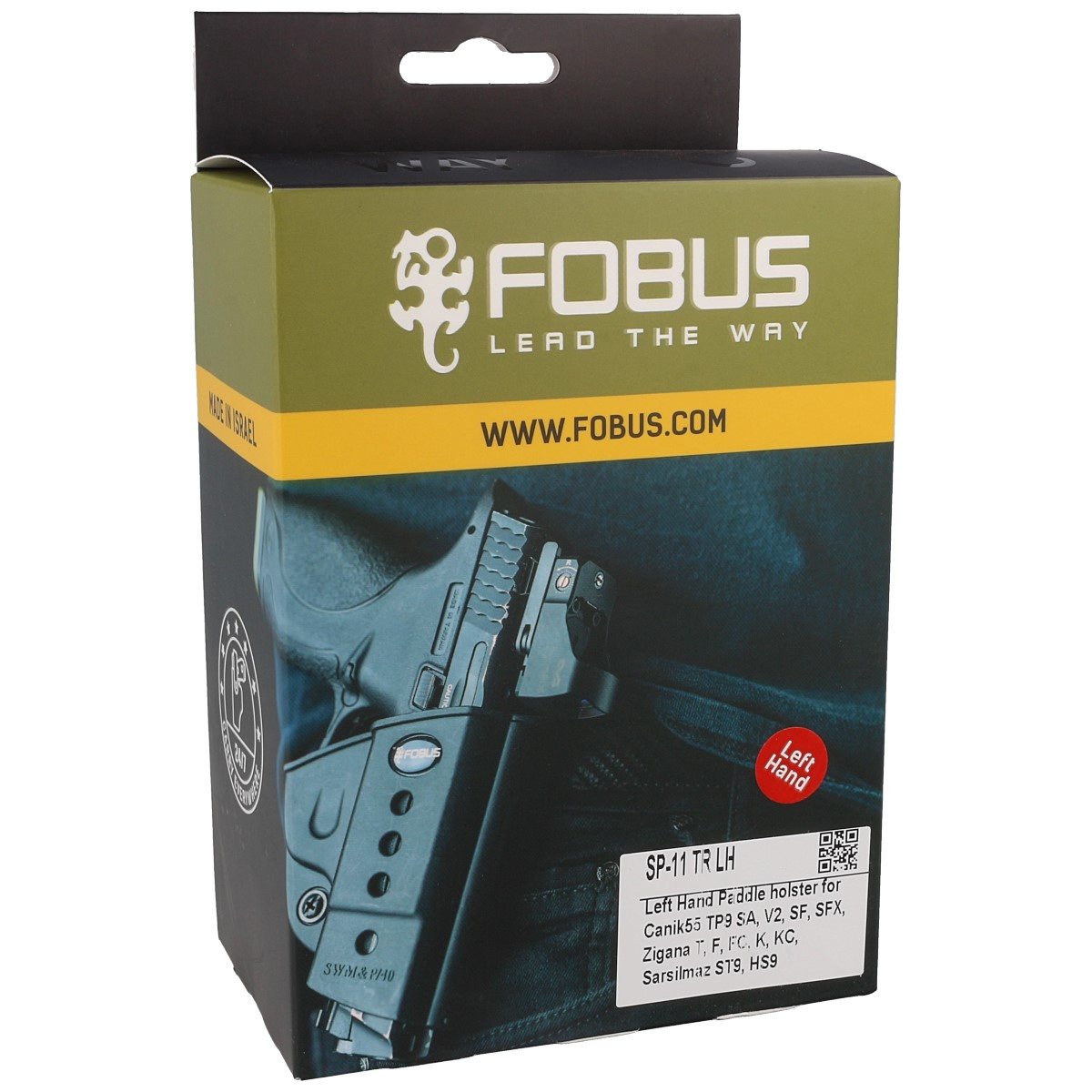 SP-11 TR LH (Paddle) kabura otwarta typu PRH (Passive Retention Holster) izraelskiej firmy Fobus. Lekka, prosta konstrukcja mająca wpływ na niewielką wagę. Niski profil ułatwia ukrycie broni, zwiększając komfort jej przenoszenia. Kabura dobrze zabezpiecza przed uszkodzeniem, nie ma tendencji do przemieszczania się. Wykonana metodą wtryskową z odpornego na zarysowania, udar oraz ekstremalne temperatury tworzywa sztucznego o dużej gęstości. Wersja leworęcznych.