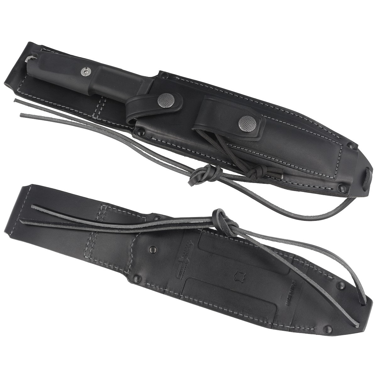 Pochwa - piękna, klasyczna, wykonana ze skóry najwyższej jakości, zawiera małą kieszonkę na terenową mini ostrzarkę lub kamień ostrzący.