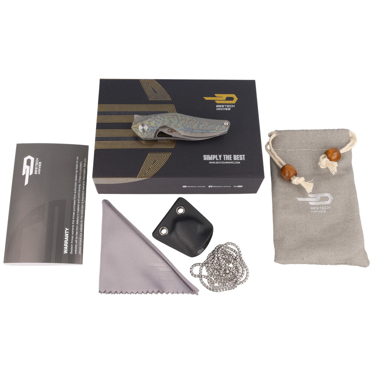 Nóż na szyję Bestech The Reticulan Grey/Colorful Titanium, Stonewashed/Satin CPM S35VN by Elijah Isham (BT1810E)
