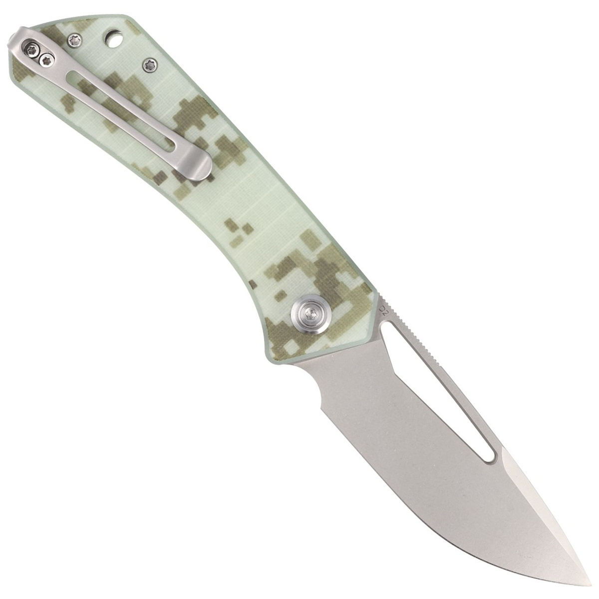 - Thalia Camo G10, Beadblasted kompaktowy, mocny folder EDC. Głownia drop point ze stali narzędziowej D2, Front Flipper do otwierania oraz rękojeść z kompozytu G10 zapewniająca pewny uchwyt. Znakomity stosunek jakości do ceny! Bestseller!