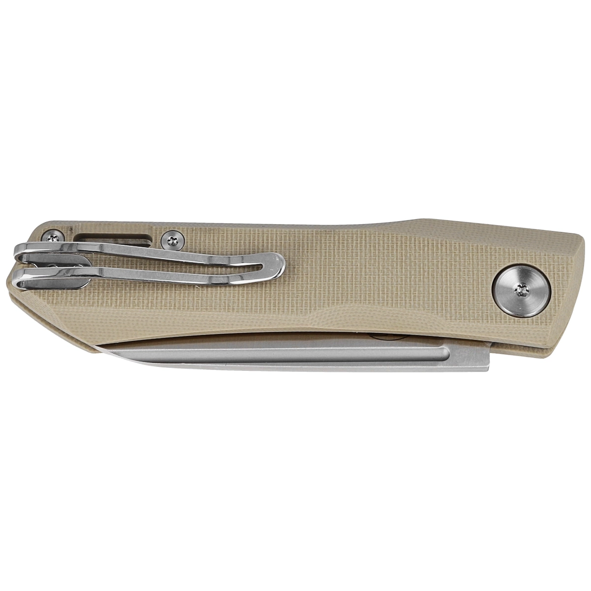 Głownia - typu Sheepsfoot z eleganckim wykończeniem Satin. Prosta krawędź tnąca zbiega się w kierunku ostrego jak igła czubka noża. Grubość klingi zapewnia wysoką wytrzymałość podczas gdy wysoki, płaski szlif daje doskonałą geometrię krawędzi tnącej oraz ekstremalną wydajność cięcia. Za gładką pracę mechanizmu otwierającego ostrze odpowiadają podkładki z fosforobrązu, dzięki którym nóż można otworzyć za pomocą długiego wycięcia pod kciuk idealnego dla osób prawo i leworęcznych. Nóż utrzymywany jest w pozycji zamkniętej sprężyną slip-joint, dzięki czemu jego posiadanie i noszenie jest dozwolone w wielu krajach które mają zakaz dla noży blokowanych.