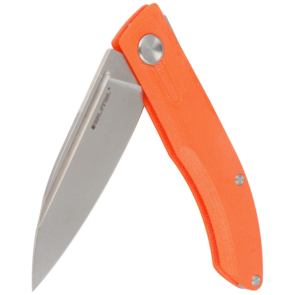 - Stella Orange G10, Stonewash jeszcze lżejsza wersja noża składanego z rodziny Stella, efekt współpracy polskiego projektanta Jakuba Wieczorkiewicza (Poltergeist Works) i firmy RealSteel Knives. Rękojeść z G10, stal nierdzewna VG-10. Lekki i kompaktowy!