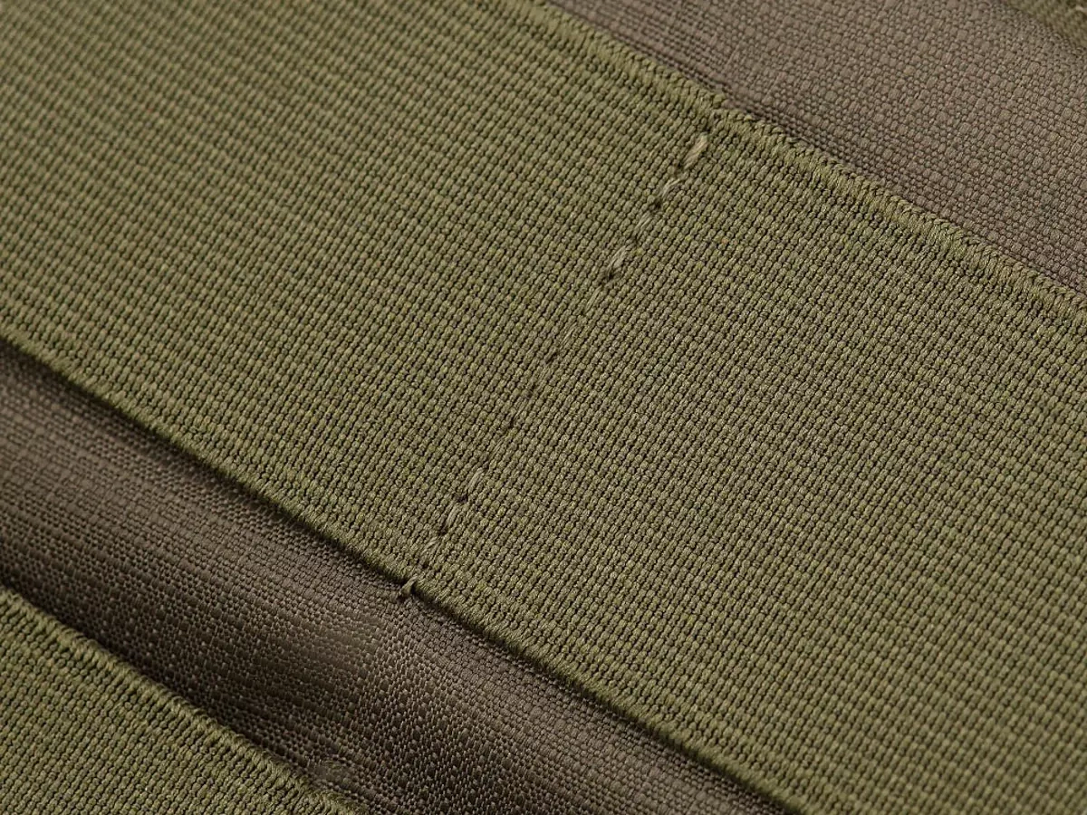 Duża kieszeń wewnętrzna wyposażona w zestaw elastycznych taśm do mocowania m.in. noża, latarki, multitoola. Otwierana pod kątem 90 stopni, dzięki lince paracord z punktową regulacją. Dodatkowa przednia płaska kieszeń na dokumenty lub mniejsze akcesoria. Komora główna oraz kieszeń przednia zasobnika zapinane zamkami YKK®. Zamki zakończono trokami ułatwiającymi obsługę również w rękawicach.