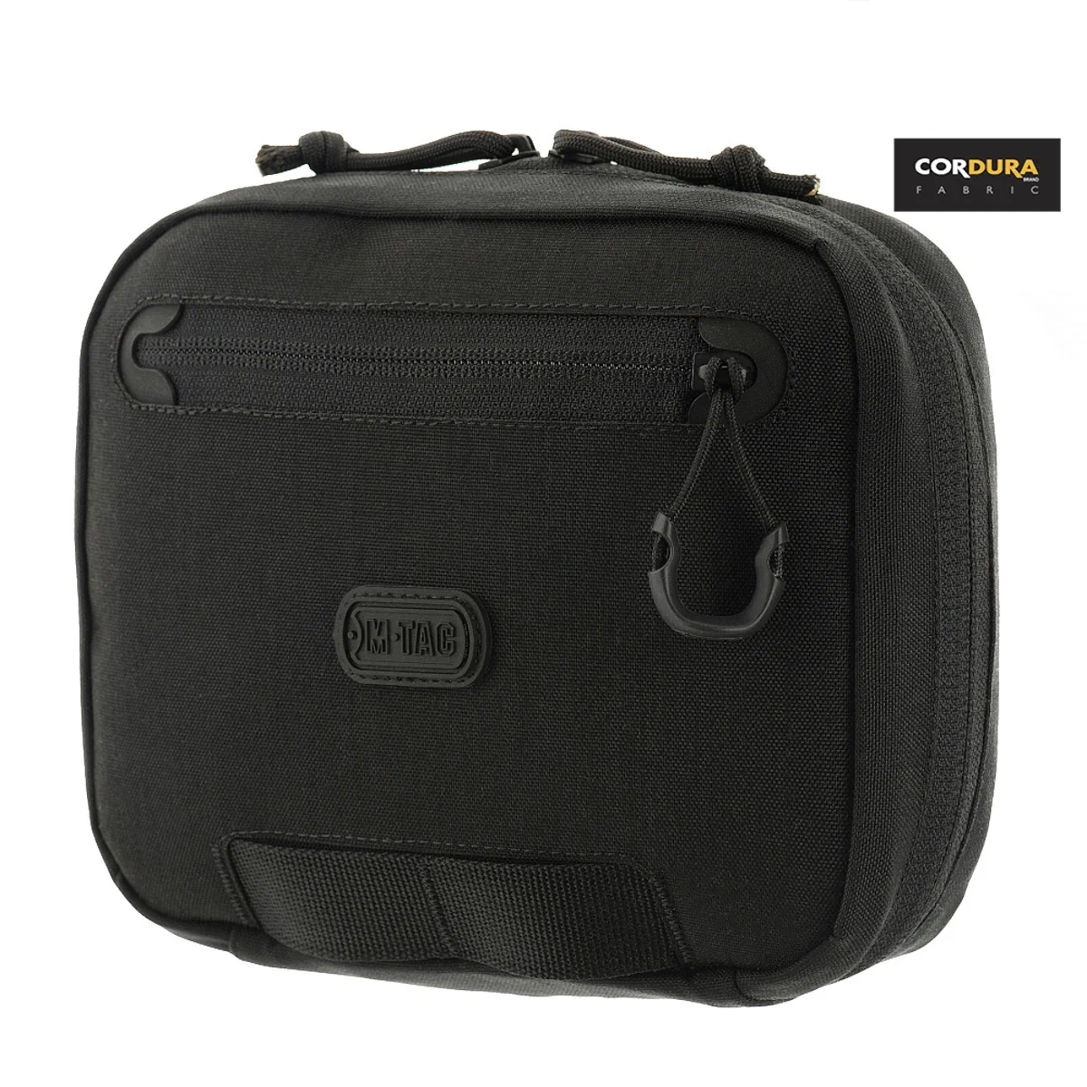 Uniwersalny organizer firmy M-Tac wykonany z wytrzymałej Cordury 500D do przenoszenia zestawu EDC lub NAZ. Wyposażony w szybkie mocowanie na pasie lub pod taśmy systemu M.O.L.L.E. (Modular Lightweight Load-carrying Equipment) ułatwia utrzymanie porządku w plecaku lub torbie.