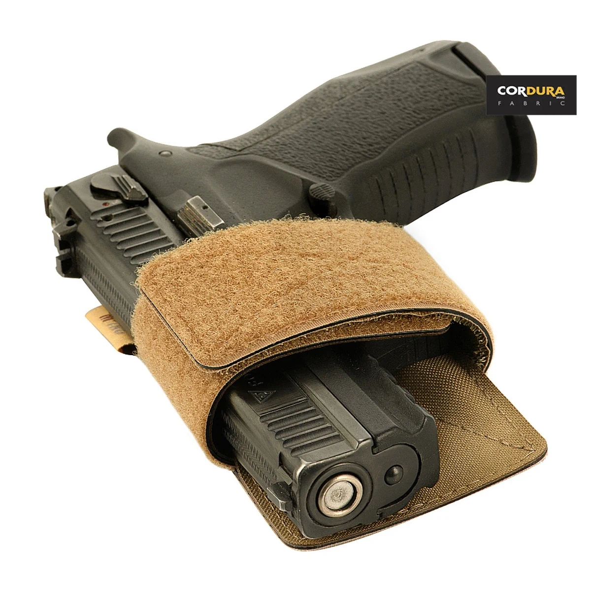 - Uniwersalna kabura wewnętrzna marki M-Tac. Przeznaczona do skrytego przenoszenia broni krótkiej w nerce, torbie lub plecaku wyposażonej w panel z rzepem Velcro. Pasuje do większości pistoletów w tym Glock 17/19, Colt 1911, CZ-75, Walther P99.