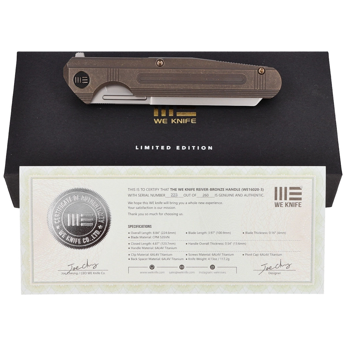 Nóż składany WE Knife Reiver LE No 223/260 Bronze Titanium, Silver Bead Blasted CPM S35VN (WE16020-3)