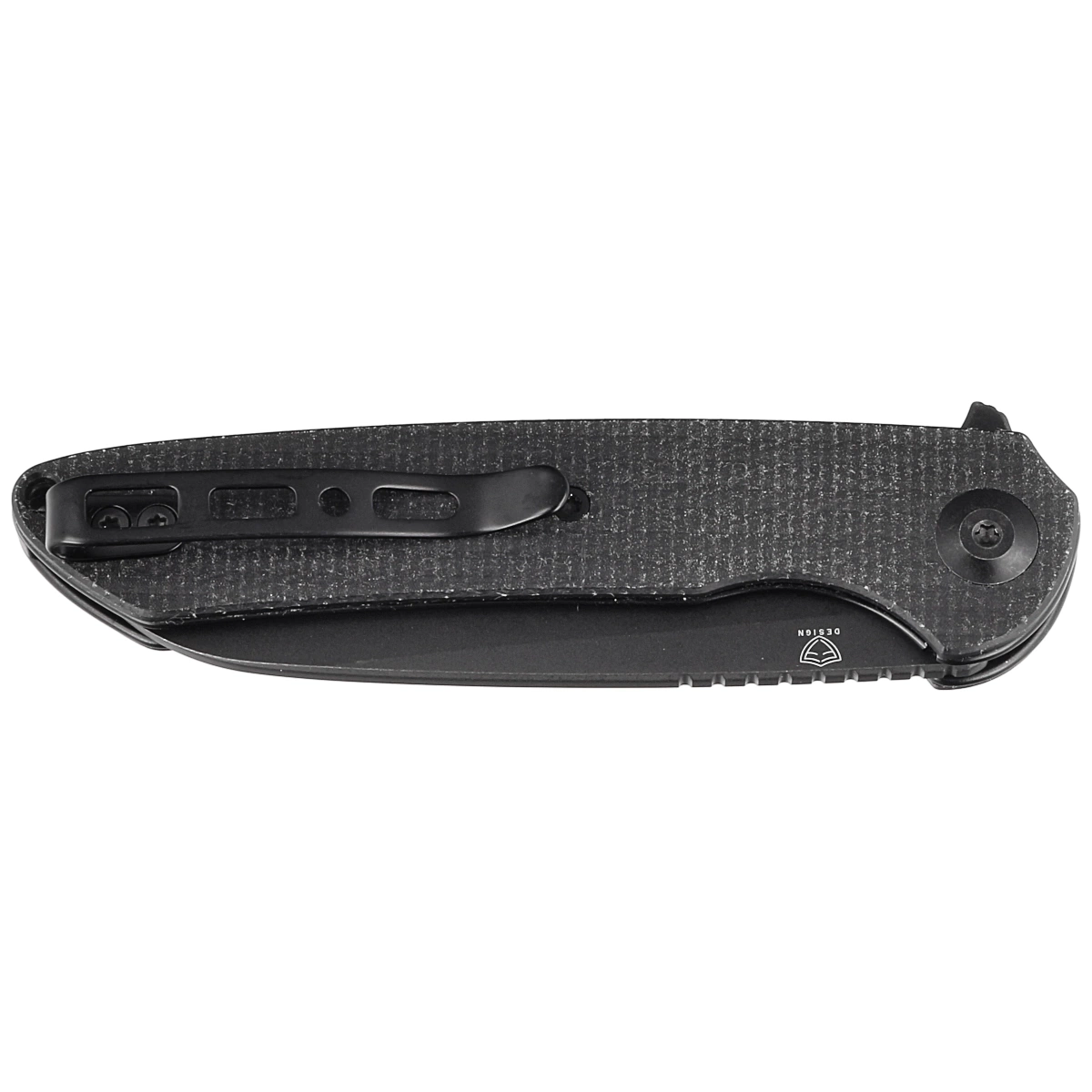 Rękojeść - w czarnym kolorze. Wykonana z Micarty, kompozytowego materiału z płótna prasowanego pod ciśnieniem z syntetyczną żywicą. Fazowane krawędzie okładek eliminują ostre krawędzie dla wygody, uchwytu. Backspacer wykonany z G10. Wykonane z przodu podcięcie na palec (fore finger groove) poprawia pewność uchwytu. Dwupozycyjny, prawo/lewostronny klips deep carry pozwala przenosić dyskretnie nóż w kieszeni w pozycji tip-up (czubkiem ostrza ku górze).