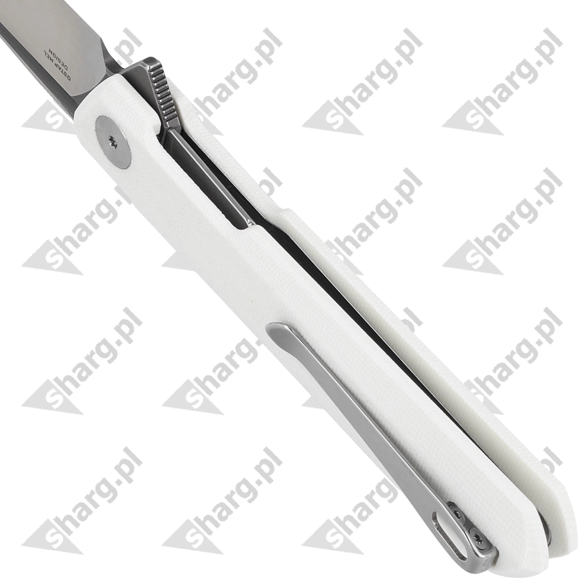 Dundee White G10, Grey Titanized / Satin kompaktowy nóż składany E.D.C. Efekt współpracy polskiego knifemakera, Ostapa Hela z firmą Bestechman. Wykonany z dobrych materiałów przy zachowaniu niezwykle atrakcyjnej ceny folder z klingą ze sprawdzonej stali D2. Bestseller!