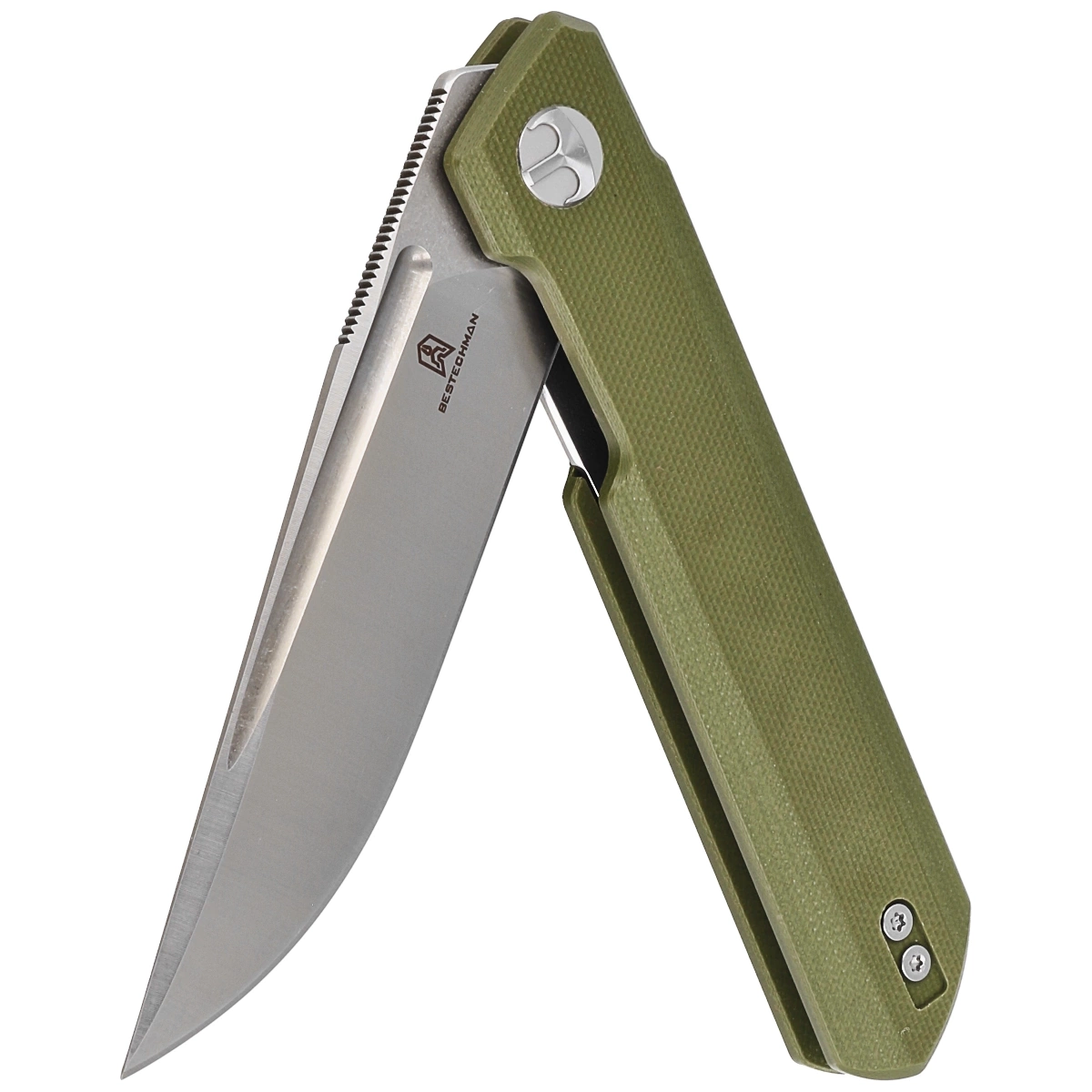 Dundee OD Green G10, Stonewash / Satin kompaktowy nóż składany E.D.C. Efekt współpracy polskiego knifemakera, Ostapa Hela z firmą Bestechman. Wykonany z dobrych materiałów przy zachowaniu niezwykle atrakcyjnej ceny folder z klingą ze sprawdzonej stali D2. Bestseller!