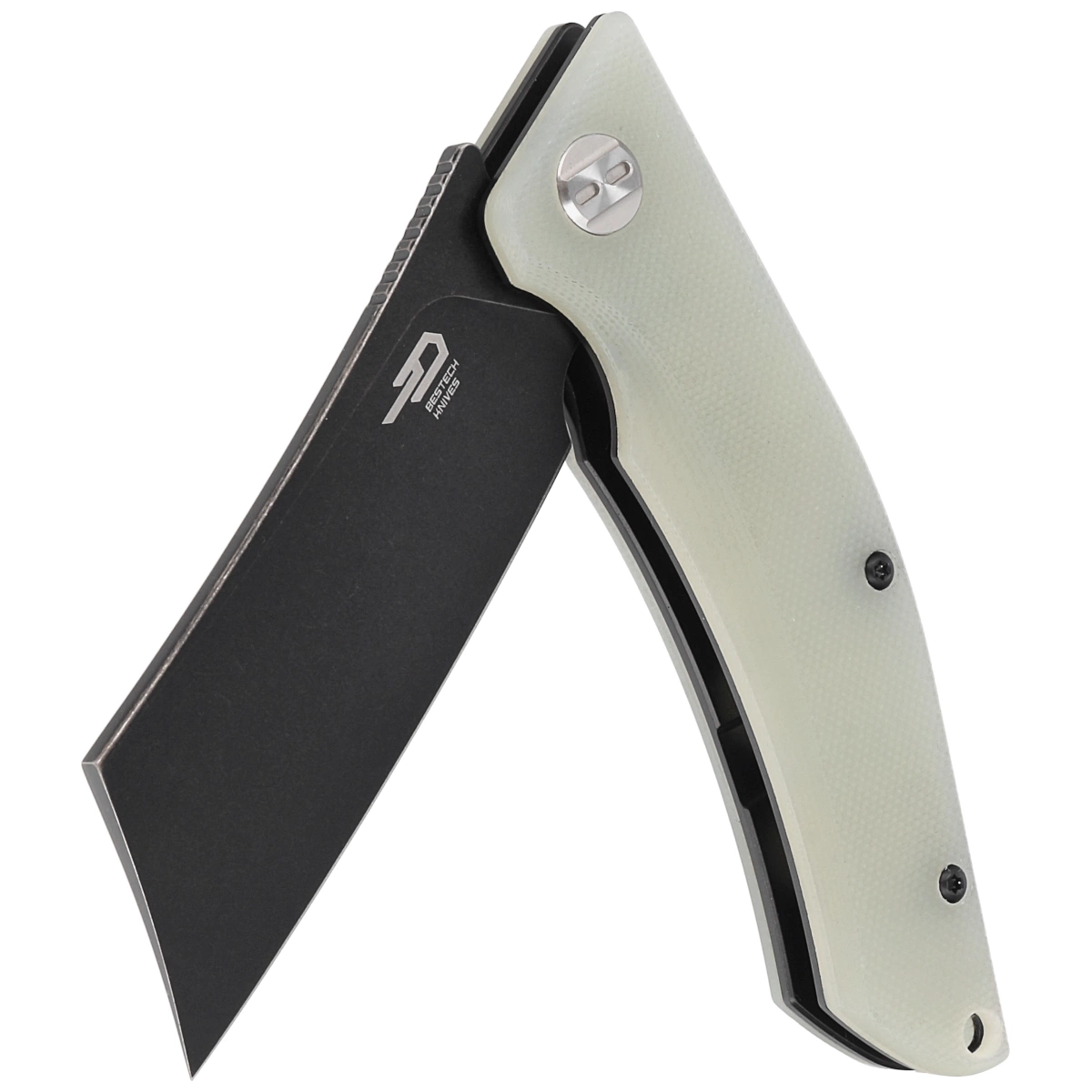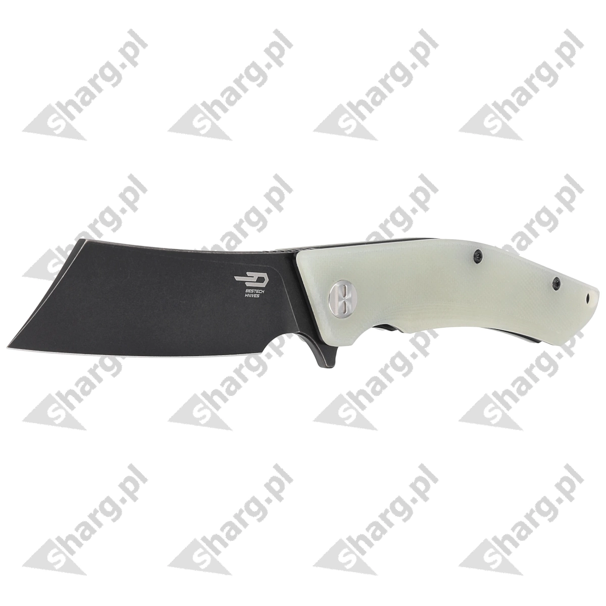 Głownia - typu Cleaver (tasak) wykończona maskującą rysy metodą Stonewashed a następnie pokryta czarną powłoką. Lekko zakrzywiona krawędź tnąca zbiega się w kierunku ostrego czubka noża. Grubość klingi zapewnia wysoką wytrzymałość podczas gdy wysoki, płaski szlif daje doskonałą geometrię krawędzi tnącej oraz ekstremalną wydajność cięcia. Ceramiczne łożyska kulkowe wspomagają otwarcie ostrza za pomocą szybkiej płetwy flippera (index-finger flipper) po otwarciu pełniącej funkcję jelca. Fragment grzbietu klingi pokryto upper jimping, karbowanym oparciem pod kciuk ułatwiającym kontrolę nad nożem. Całość blokowana jest sprawdzoną i popularną blokadą liner lock.