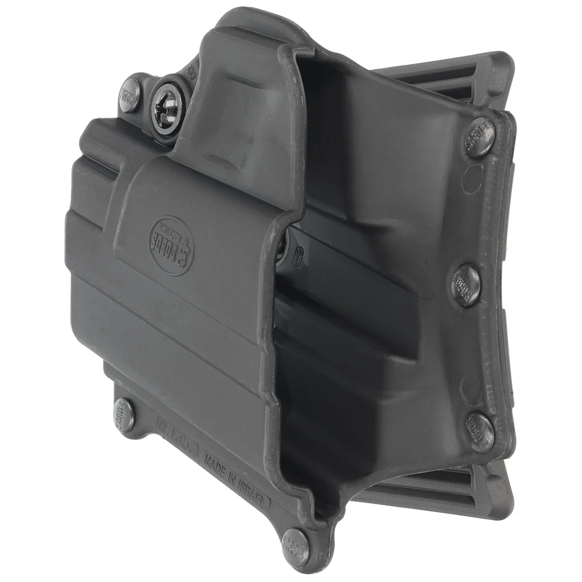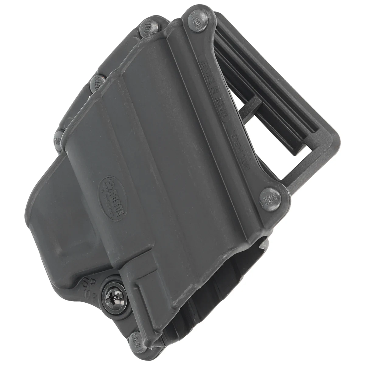 Rodzaj kabury - ND / Evolution-2 (New Design / E2 Series) - nowa generacja kabur Fobus. Wykonana z jednego kawałka tworzywa, jest lekka mimo dodatkowych funkcji. Zawiera dodatkowy pasek metalu wzmacniający nity mocujące kaburę z płetwą co poprawia jej wytrzymałość oraz niezawodność. Redukcja wagi została osiągnięta poprzez zastosowanie kilku otworów na powierzchni kabury. Kabury z serii ND / E2 posiadają dodatkową śrubę przy kabłąku umożliwiającą indywidualne dostosowanie siły docisku kabury. Regulacja ma wpływ na siłę z jaką broń jest trzymana w kaburze oraz z jaką siłą jest wyciągana z kabury. Niski profil ułatwia ukrycie broni, zwiększając komfort jej przenoszenia. Kabura dobrze zabezpiecza broń przed uszkodzeniem, nie ma tendencji do przemieszczania się. Dostępna w wersji dla prawo i leworęcznych (LH).