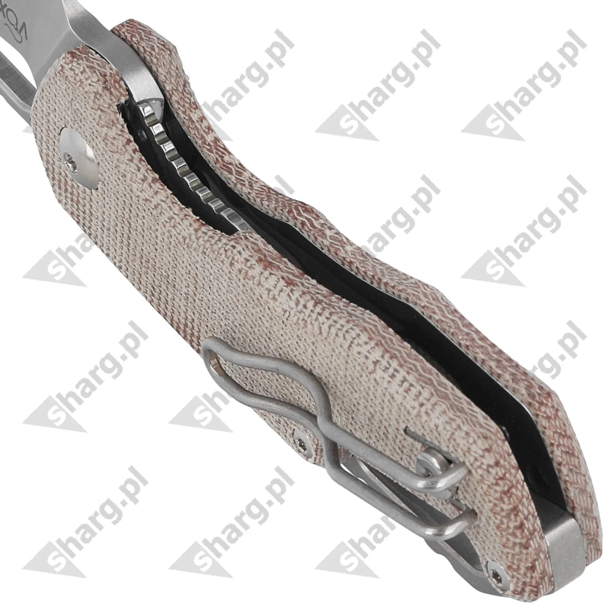 - Isonzo Clip Point Natural Canvas Micarta, Stonewashed nóż składany EDC projektu Jespera Voxnæsa. Backspacer z dużym otworem na linkę, nóż można przymocować do sprzętu za pomocą karabińczyka, co czyni go idealnym narzędziem podczas wypadów poza miasto!