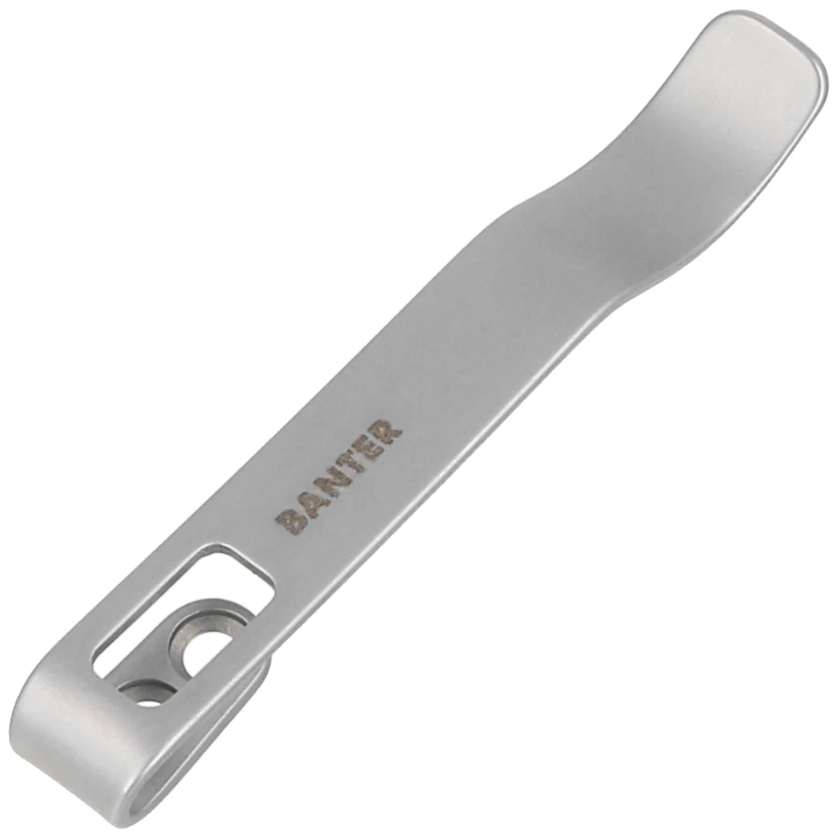 Klips stalowy do noży WE Banter, Civivi Baby Banter oraz do wszystkich modeli z odpowiednim rozstawem otworów mocujących.