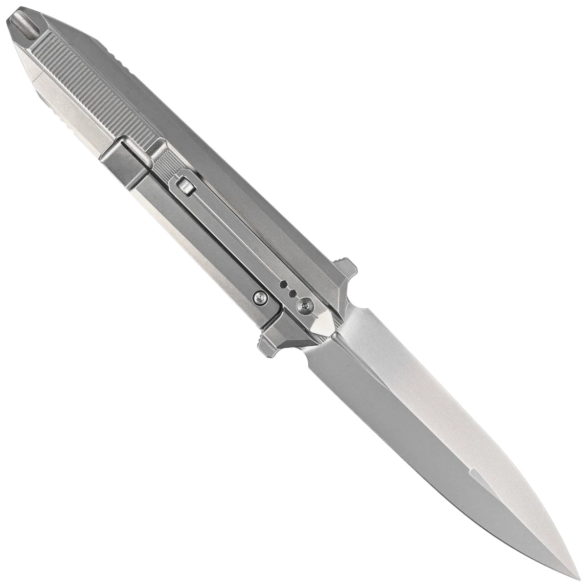 Głownia - typu Dagger, ostrzona jednostronnie, wykończona maskującą rysy metodą Bead Blasted a następnie starannie wypolerowana. Lekki brzusiec wydłuża długość krawędzi tnącej w stosunku do długości klingi zbiegając się w kierunku ostrego jak igła czubka noża. Niewielka grubość w połączeniu z wysokim płaskim szlifem (Flat Grind) daje doskonałe właściwości tnące połączone z wysoką wytrzymałością. Ceramiczne łożyska kulkowe wspomagają płynną pracę mechanizmu otwierającego klingę, którą można otworzyć za pomocą szybkiej płetwy flippera (index-finger flipper). Po otwarciu płetwa tworzy mini-gardę zapobiegającą ześlizgnięciu się dłoni na ostrze. Całość blokowana jest sprawdzoną i popularną blokadą frame lock ze stalową wkładką zabezpieczającą przed wycieraniem czoła blokady.