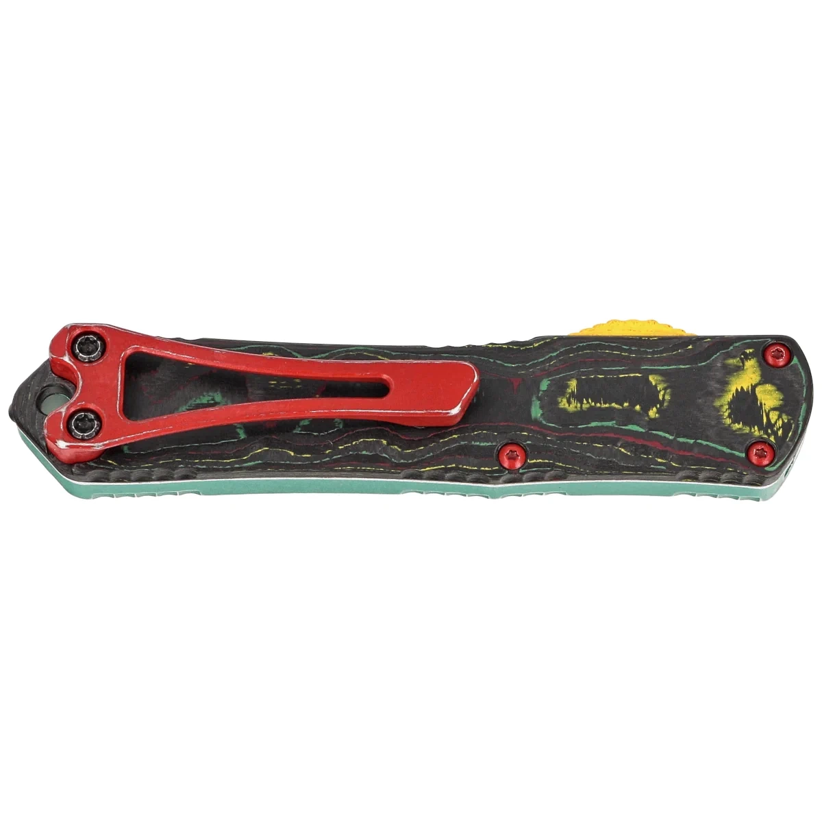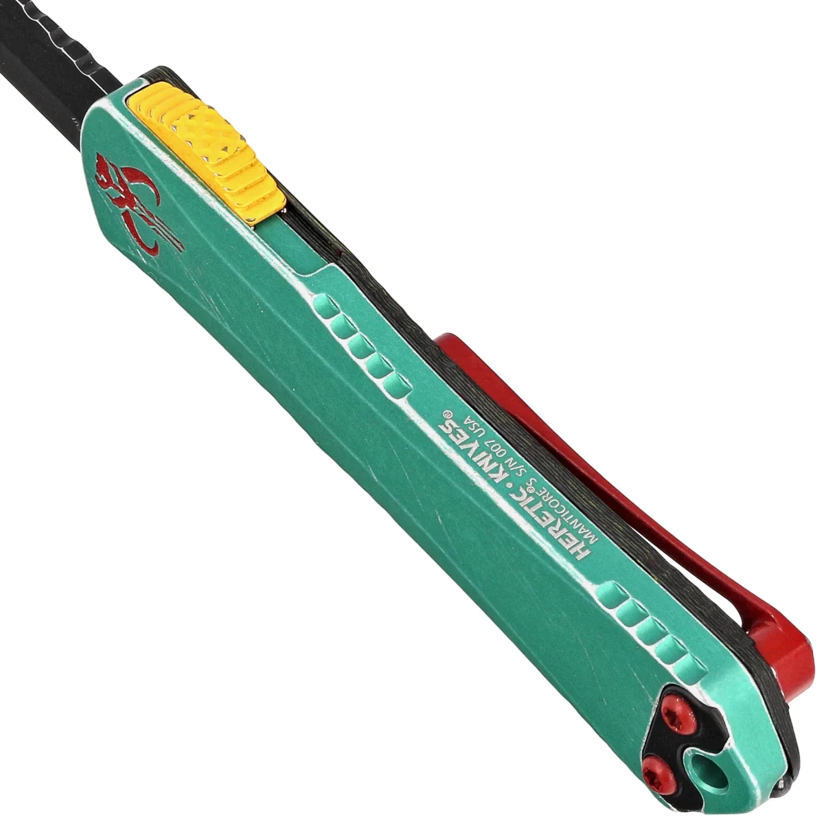 Nóż automatyczny OTF Heretic Manticore S T/E Bounty Hunter/Camo Carbon, Battleworn Black Cerakote MagnaCut by Tony Marfione Jr.