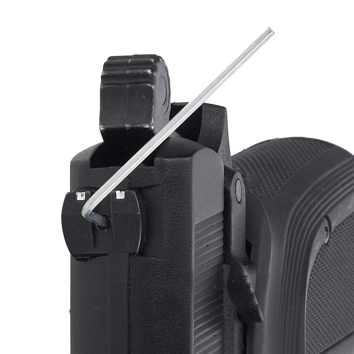 Magazynek - metalowy o pojemności 14 stalowych kulek BBs w kal. 4.5 mm. Waga amunicji rozkłada się równomiernie na całej długości magazynka. Należy używać wyłącznie śrutu stalowego BB.