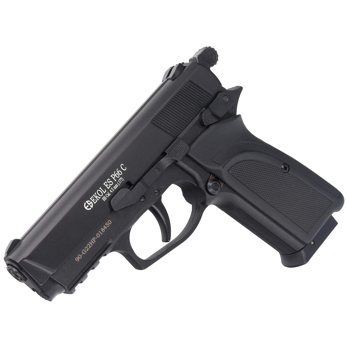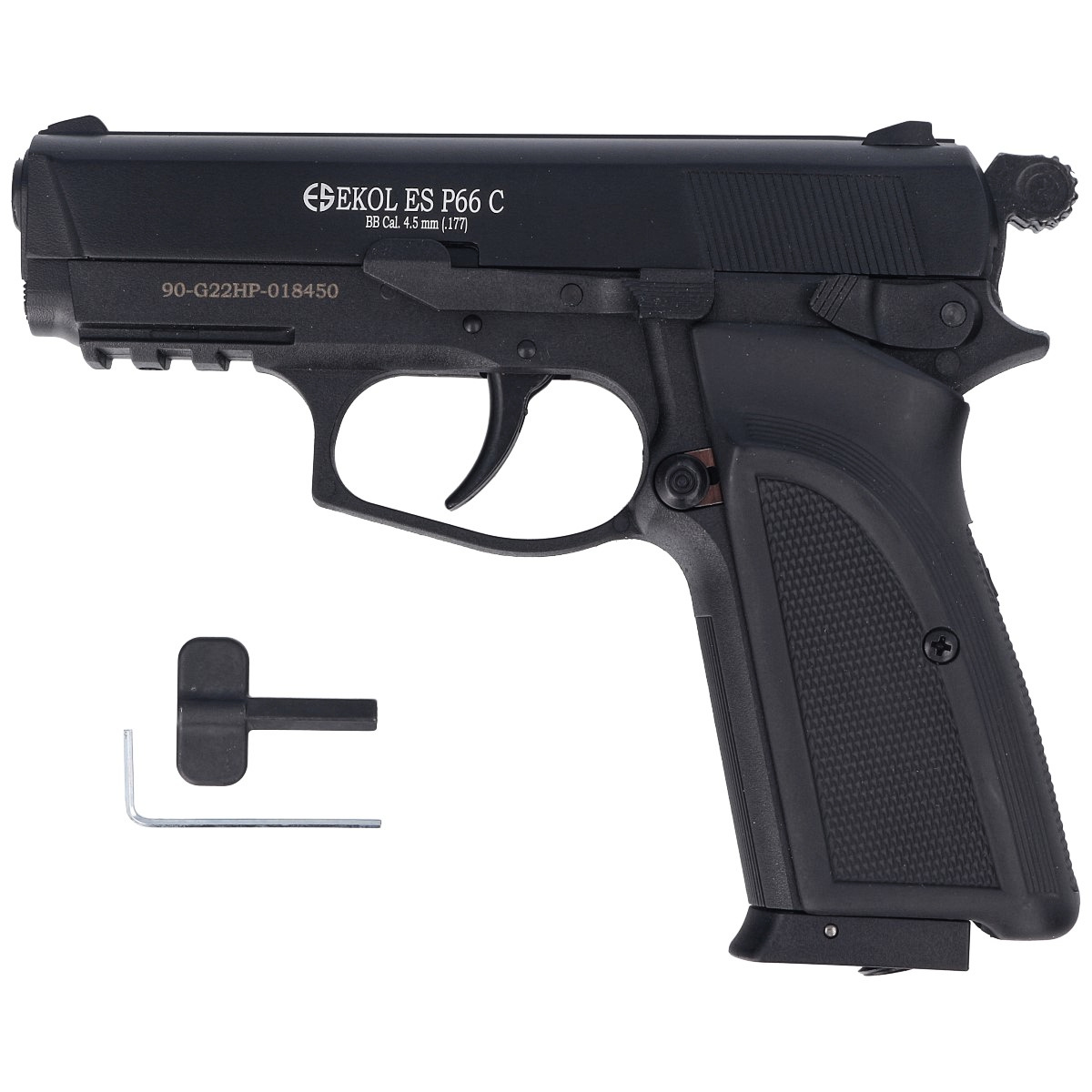 • Ekol ES P66C Czarny Mat kompaktowy i ultralekki. Samopowtarzalny pistolet pneumatyczny oparty konstrukcje na broni sygnałowej. Dzięki tak silnym korzeniom, ta mocna wiatrówka 135 m/s nadaje się do dynamicznego strzelania sportowego i treningu taktycznego.