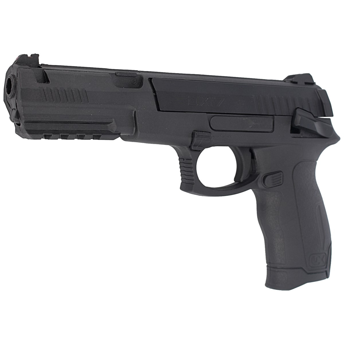 Umarex DX17 4,5 mm wyróżnia się lekką konstrukcją, wykonaną z wytrzymałego polimeru. Pistolet waży zaledwie 440 g i może użytkowany przez młodszych strzelców i kobiety. Rękojeść jest profilowana.