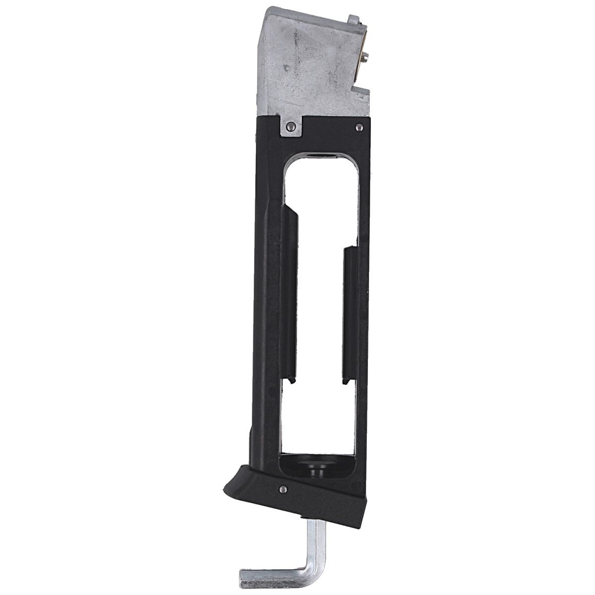 Magazynek - metalowy o pojemności 14 stalowych kulek BBs w kal. 4.5 mm. Waga amunicji rozkłada się równomiernie na całej długości magazynka. Należy używać wyłącznie śrutu stalowego BB.