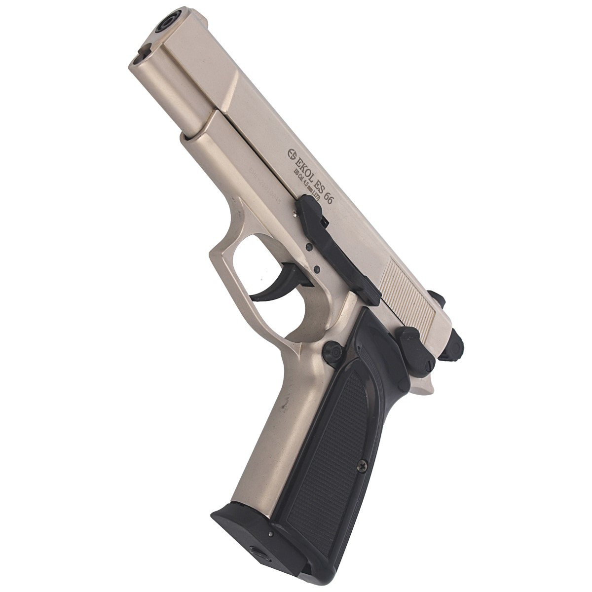 - Ekol ES 66 Satynowy - samopowtarzalny pistolet pneumatyczny o konstrukcji opartej na broni sygnałowej. Dzięki tak silnym korzeniom, ten potężny pistolet o prędkości 150 m/s nadaje się do dynamicznego strzelectwa i treningu taktycznego. Metalowy szkielet.