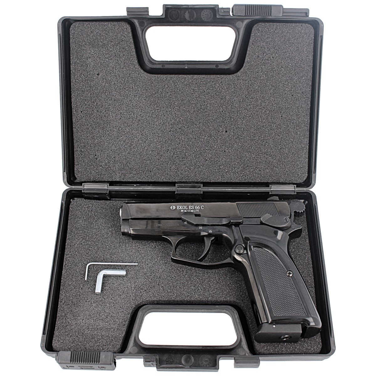 - Ekol ES 66C Czarny - kompaktowy, samopowtarzalny pistolet pneumatyczny oparty konstrukcyjnie na broni sygnałowej. Dzięki silnym korzeniom, ta mocna wiatrówka 140 m/s nadaje się do dynamicznego strzelectwa i treningu taktycznego. Metalowy szkielet.
