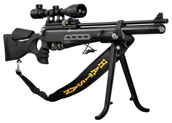 Wyposażenie dodatkowe - metalowe obrotowe bączki do mocowania zawieszenia. Nasadka / adapter (air cylinder discharging cap) do spuszczania ciśnienia z kartusza. Końcówka Quick-Fill umożliwiająca szybkie napełnianie kartusza powietrzem za pomocą pompki Hatsan Hand Pump, butli technicznej lub nurkowej (300 bar).