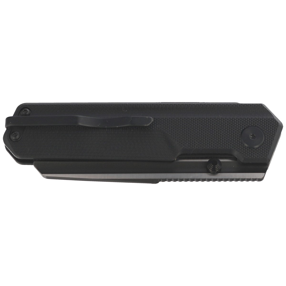 Rękojeść - z kompozytu G10 (włókno szklane prasowane pod ciśnieniem z żywicą syntetyczną) o grubej i szorstkiej fakturze. Fazowane krawędzie okładek eliminują ostre ranty dla wygody i poprawiają pewność uchwytu. Otwarta konstrukcja tzw. open-backed mocowana stalowymi tulejami dystansowymi redukuję wagę oraz ułatwia czyszczenie. Jednostronny (prawa) klips umożliwia przenoszenie noża w pozycji tip-up, czubkiem ostrza ku górze.