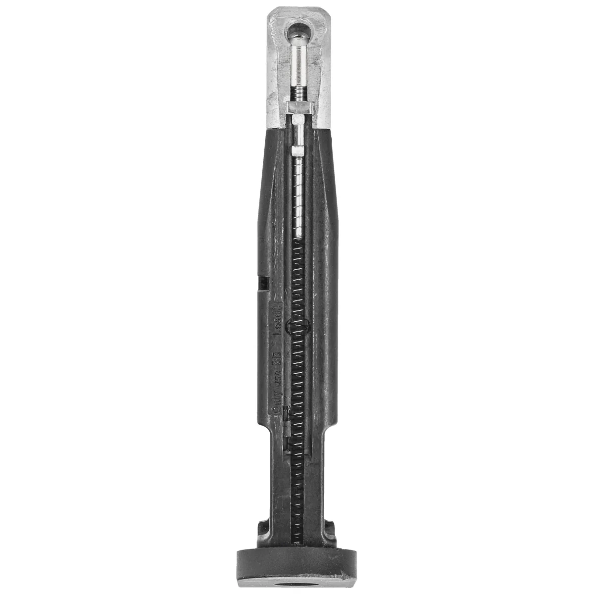 Magazynek - metalowy o pojemności 16 stalowych kulek BBs w kal. 4.5 mm. Waga amunicji rozkłada się równomiernie na całej długości magazynka. Należy używać wyłącznie śrutu stalowego BB.