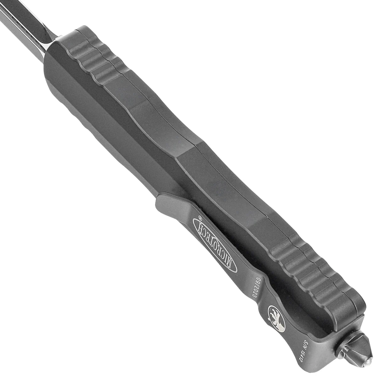 Rękojeść - wykonana z doskonałą precyzją w technologii 3D na frezarkach CNC, z anodyzowanego na czarno aluminium 6061-T6. Faktura powierzchni rękojeści powoduje, że nóż nie ślizga się w dłoni podczas używania. Na grzbiecie i dole rękojeści znajdują się nacięcia (jimping) dla pewniejszego chwytu. Charakterystyczne jest umiejscowienie suwaka slidera, w zagłębieniu wyfrezowanym na boku rękojeści. Dzięki temu ręka układa się naturalniej przy otwieraniu i zamykaniu noża. Smukły profil oraz frezowany dwupozycyjny (prawa/lewa) masywny klips typu deep carry, umożliwiają dyskretne przenoszenie noża w kieszeni, w pozycji tip-down (czubkiem ostrza do dołu). Na klipsie znajduje się logo Microtech, numer seryjny i data produkcji. Rękojeść zakończono zbijakiem do bicia szyb, masywny stalowy trójkąt, w który wprasowano kulkę z węglika wolframu.