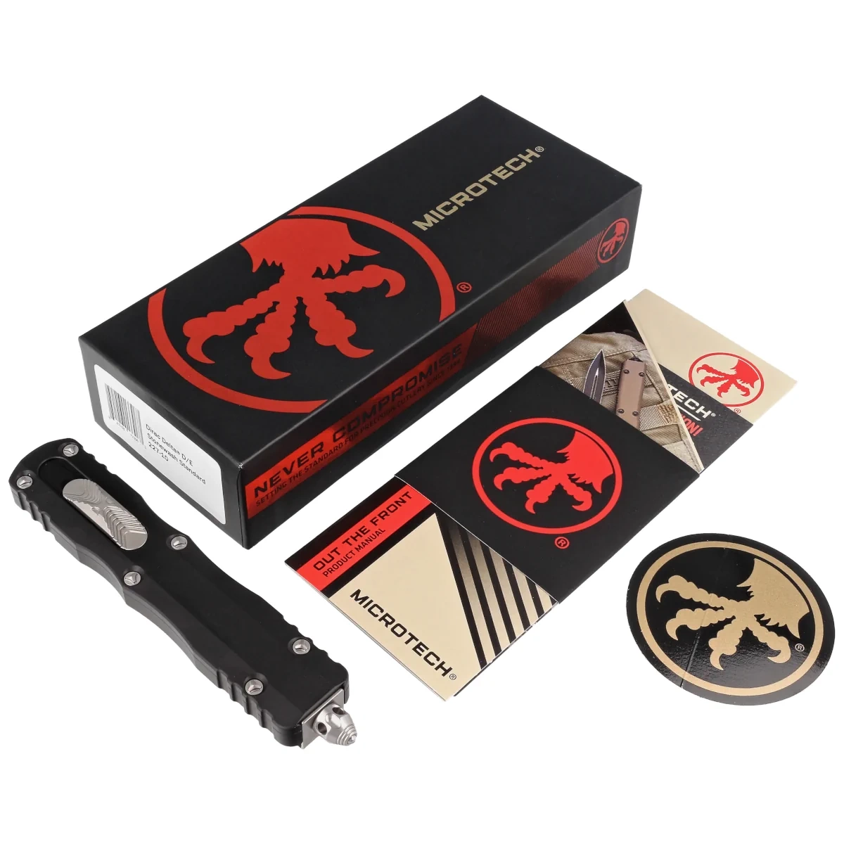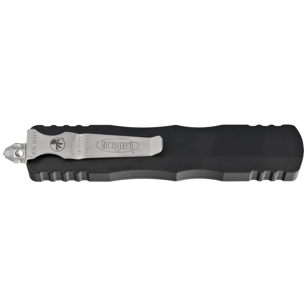 Rękojeść - wykonana z doskonałą precyzją w technologii 3D na frezarkach CNC, z anodyzowanego na czarno aluminium 6061-T6. Faktura powierzchni rękojeści powoduje, że nóż nie ślizga się w dłoni podczas używania. Na grzbiecie i dole rękojeści znajdują się nacięcia (jimping) dla pewniejszego chwytu. Charakterystyczne jest umiejscowienie suwaka slidera, w zagłębieniu wyfrezowanym na boku rękojeści. Dzieki temu ręka układa się naturalniej przy otwieraniu i zamykaniu noża. Smukły profil oraz frezowany dwupozycyjny (prawa/lewa) masywny klips typu deep carry, umożliwiają dyskretne przenoszenie noża w kieszeni, w pozycji tip-down (czubkiem ostrza do dołu). Na klipsie znajduje się logo Microtech, numer seryjny i data produkcji. Rękojeść zakończono zbijakiem do bicia szyb, masywny stalowy trójkąt, w który wprasowano kulkę z węglika wolframu.
