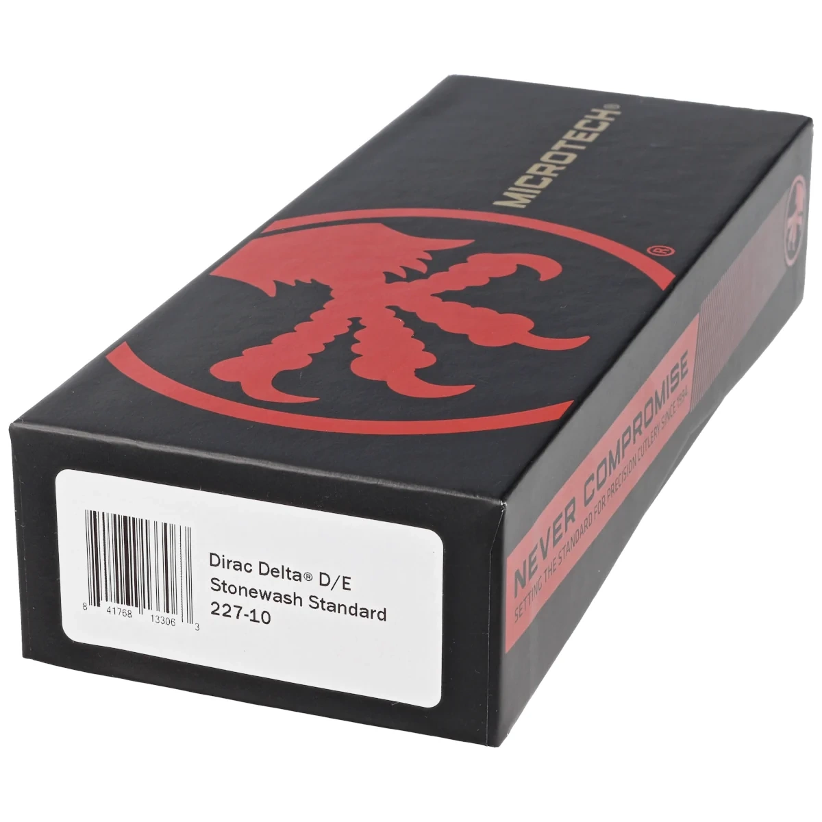 Dirac Delta® to powiększona wersja pierwszego automatycznego noża OTF D/A (Double Action) w ofercie Microtech®, wyposażonego w suwak (slider) umieszczony w zagłębieniu bocznym rękojeści. Model ten posiada nowoczesną, ergonomiczną rękojeść o zakrzywionych liniach inspirowanych kultowym modelem HALO®. W serii Dirac Delta® zastosowano charakterystyczne dla Microtech® rozwiązania klasy premium – opatentowane śruby, innowacyjny mechanizm wewnętrzny oraz funkcjonalny zbijak do szyb (glass breaker). Przy całkowitej długości 9,25 cala, Dirac Delta® to znakomity wybór jako nóż codziennego użytku (EDC).