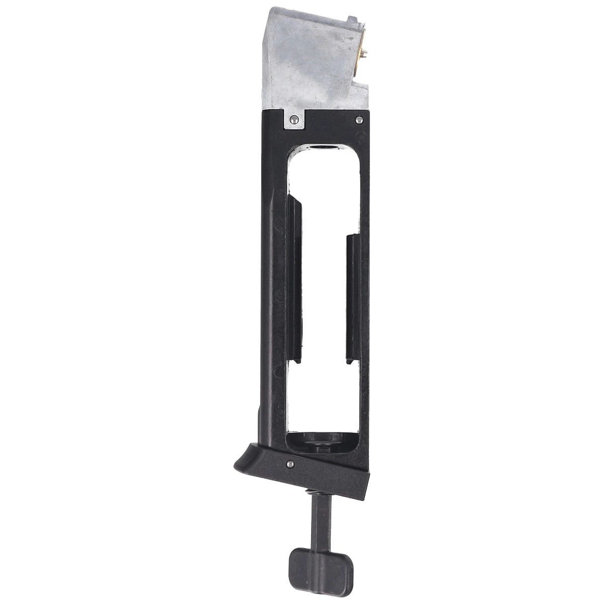 Magazynek - metalowy o pojemności 14 stalowych kulek BBs w kal. 4.5 mm. Waga amunicji rozkłada się równomiernie na całej długości magazynka. Należy używać wyłącznie śrutu stalowego BB.