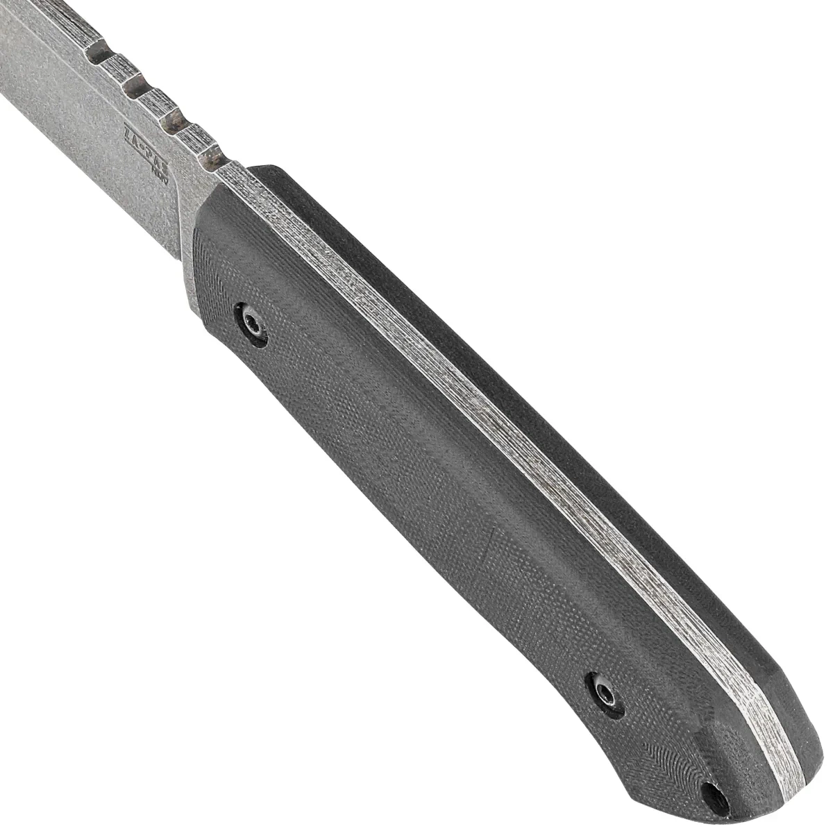 Głownia - niezwykle ostra o profilu Drop Point, z zaznaczonym brzuchem, idealna do wszelkich prac. Wykończone maskującą drobne rysy metodą Acid Stonewashed, ostrze Plain wyprowadzono wysokim szlifem płaskim (Flat Grind), wysoki szlif daje doskonałą geometrię krawędzi tnącej oraz ekstremalną wydajność cięcia. Powiększony jelec chroni dłoń przed zsunięciem się na ostrze. Na grzbiecie klingi upper jimping, karbowane oparcie pod kciuk.
