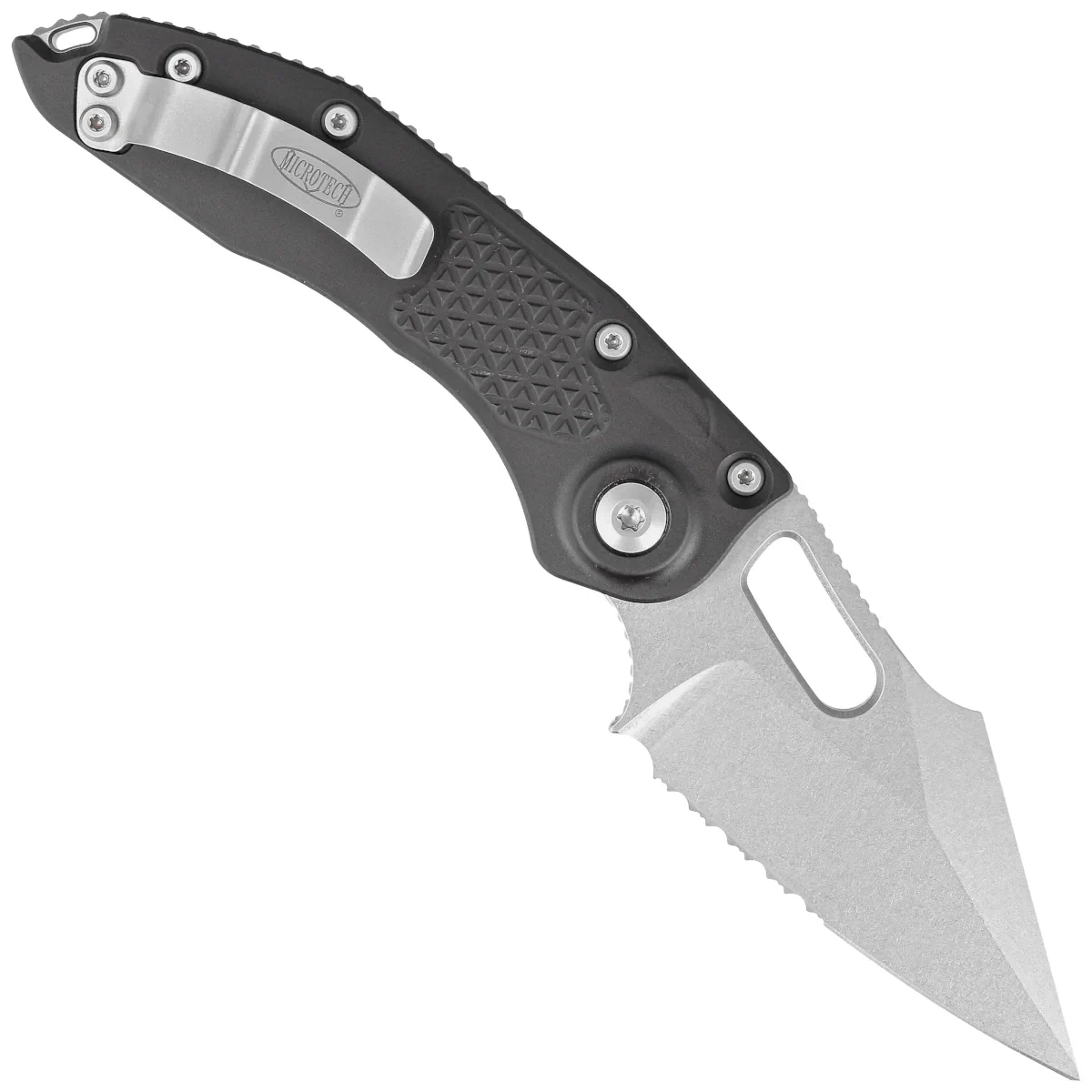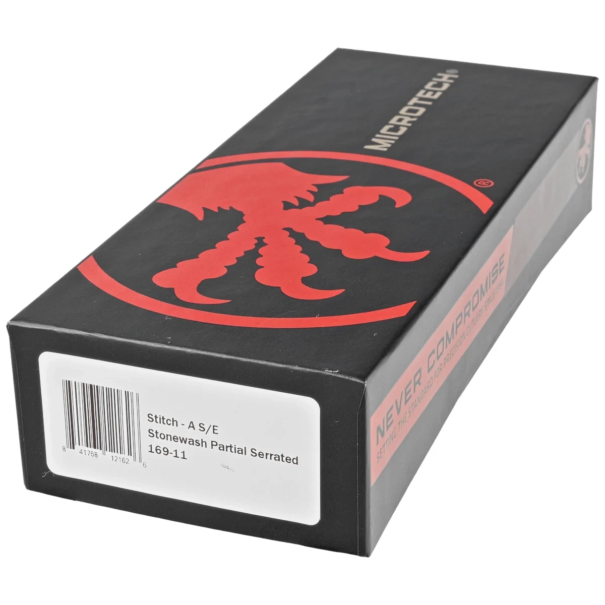- Stitch-A S/E Black Aluminium, Stonewashed P/S duży nóż automatyczny, efekt współpracy Sebastijana Berenjiego z Borka Blades i firmy Microtech. Szerokie ostrze w kształcie harpuna, doskonałe materiały i legendarna jakość wykonania firmy Microtech Knives.