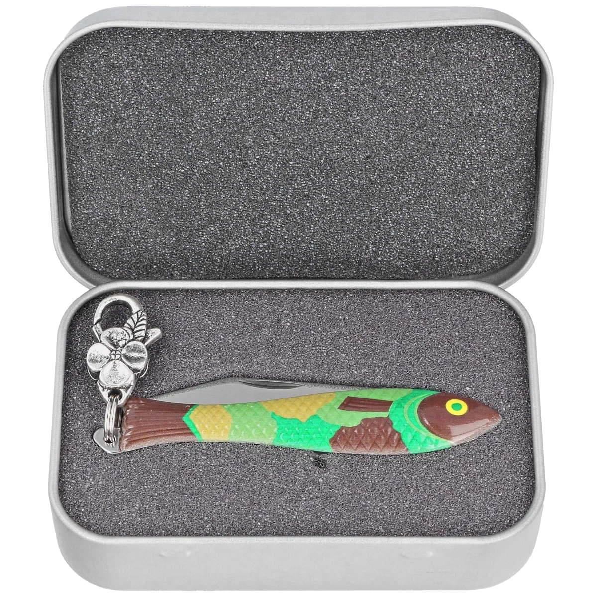 Akcesoria - nóż przychodzi w metalowym pudełku prezentowym, zawiera również ozdobny karabińczyk