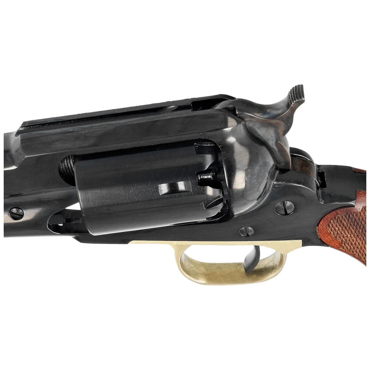 - Remington 1858 New Model Army .44, sześciostrzałowy ładowany odprzodowo kapiszonowy rewolwer czarnoprochowy w kal. .44 ze skróconą lufą 3" typu snubnose. Rewolwer z zamkniętym szkieletem ułatwiającym wyjęcie bębna i założenia nowego, już załadowanego