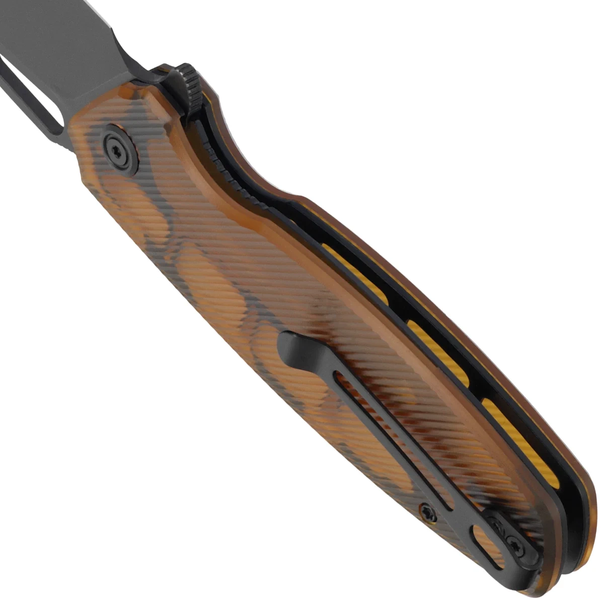 • Tityus Ultem, Black Stonewashed mocny nóż składany EDC. Szeroka, uniwersalna głownia drop point ze stali narzędziowej D2, otwór w klindze i płetwa flippera do otwierania oraz rękojeść tworzywa ULTEM. Możesz go mieć zawsze ze sobą i nigdy Cię nie zawiedzie