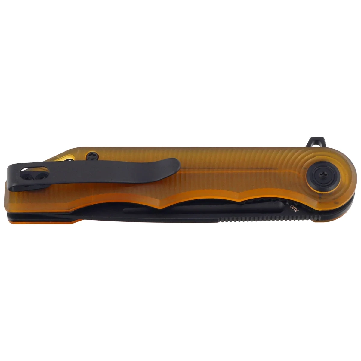 Rękojeść - okładziny z przezroczystego tworzywa Ultem™, teksturowane dla poprawienia pewności uchwytu, przykręcono do stalowej ramy noża. Otwarta konstrukcja tzw. open-backed bez typowego backspacera, mocowana do siebie stalowymi tulejami dystansowymi ułatwia czyszczenie. Prosta, solidna konstrukcja daje pewność wieloletniego użytkowania. Ergonomiczne zagłębienia pod palce ułatwiające chwyt rękojeści. Pivot ozdobiony stylizowanym logo producenta. Dwupozycyjny (prawa/lewa) stalowy klips deep carry pozwala przenosić dyskretnie nóż w kieszeni w pozycji tip-up (czubkiem ostrza do góry). Nad klipsem lanyard hole, otwór do przewleczenia linki zabezpieczającej lub ozdobnej.